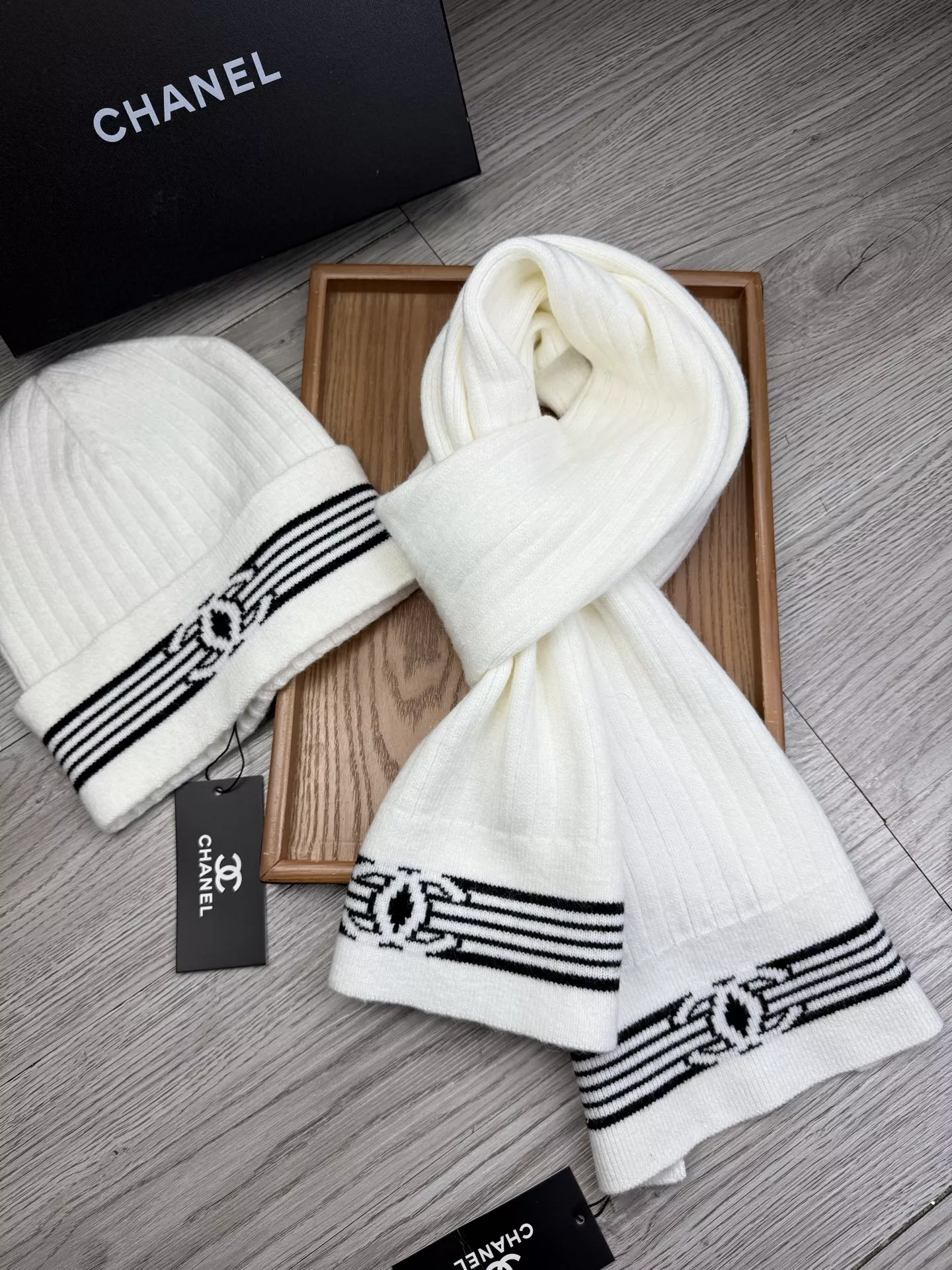 Wholeale cheap replica Chanel Hat and Scarf Set #1372154 prices $52.00 USD online, outlet ! Wholesale new arrivals cheap fake Chanel Hat and Scarf and Glove Set enjoy free shipping and 66%-OFF with best quality! The hot on sale style Chanel Hat and Scarf Set #1372154.