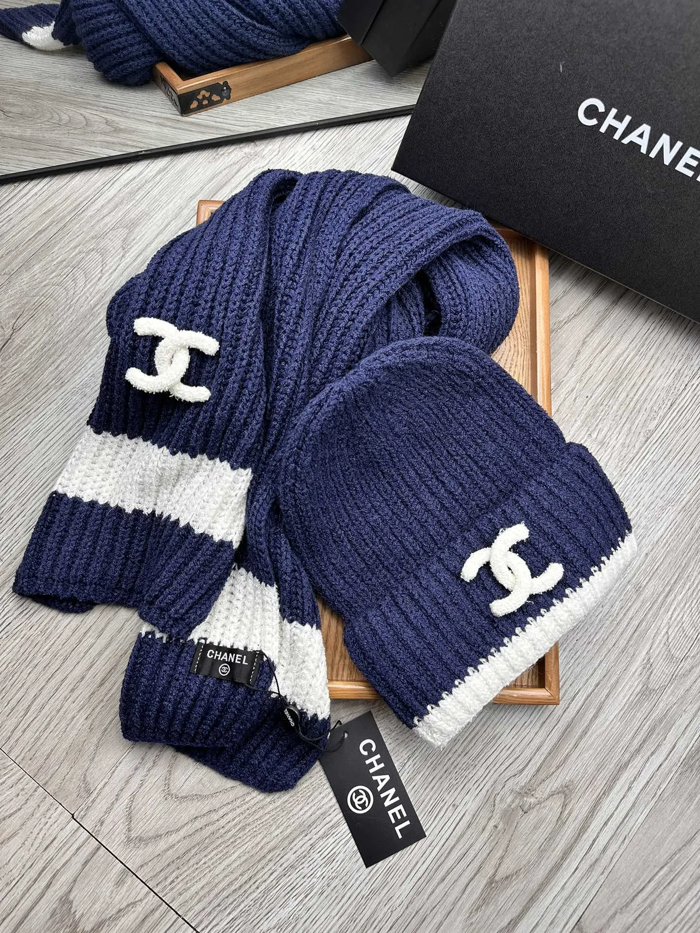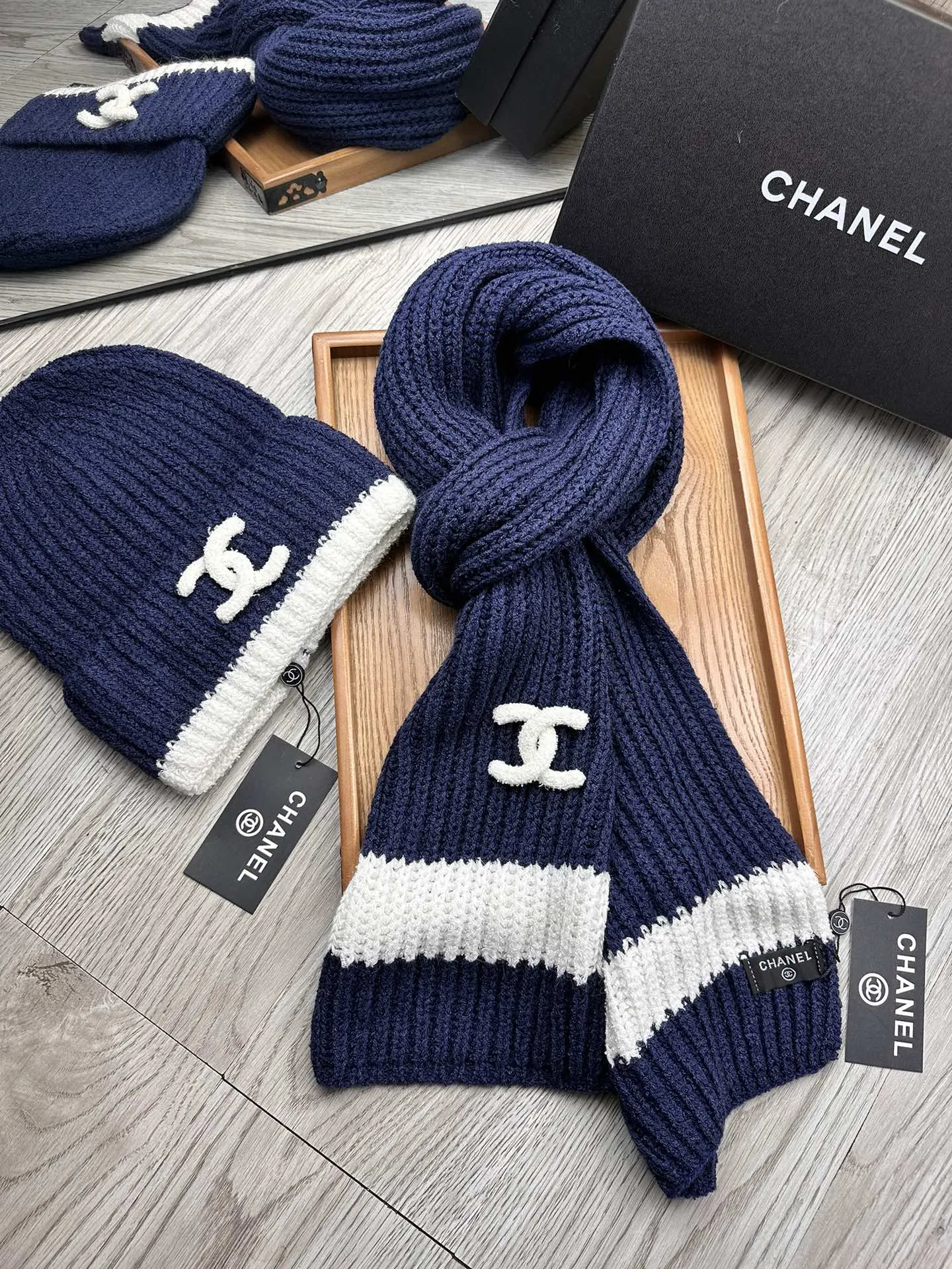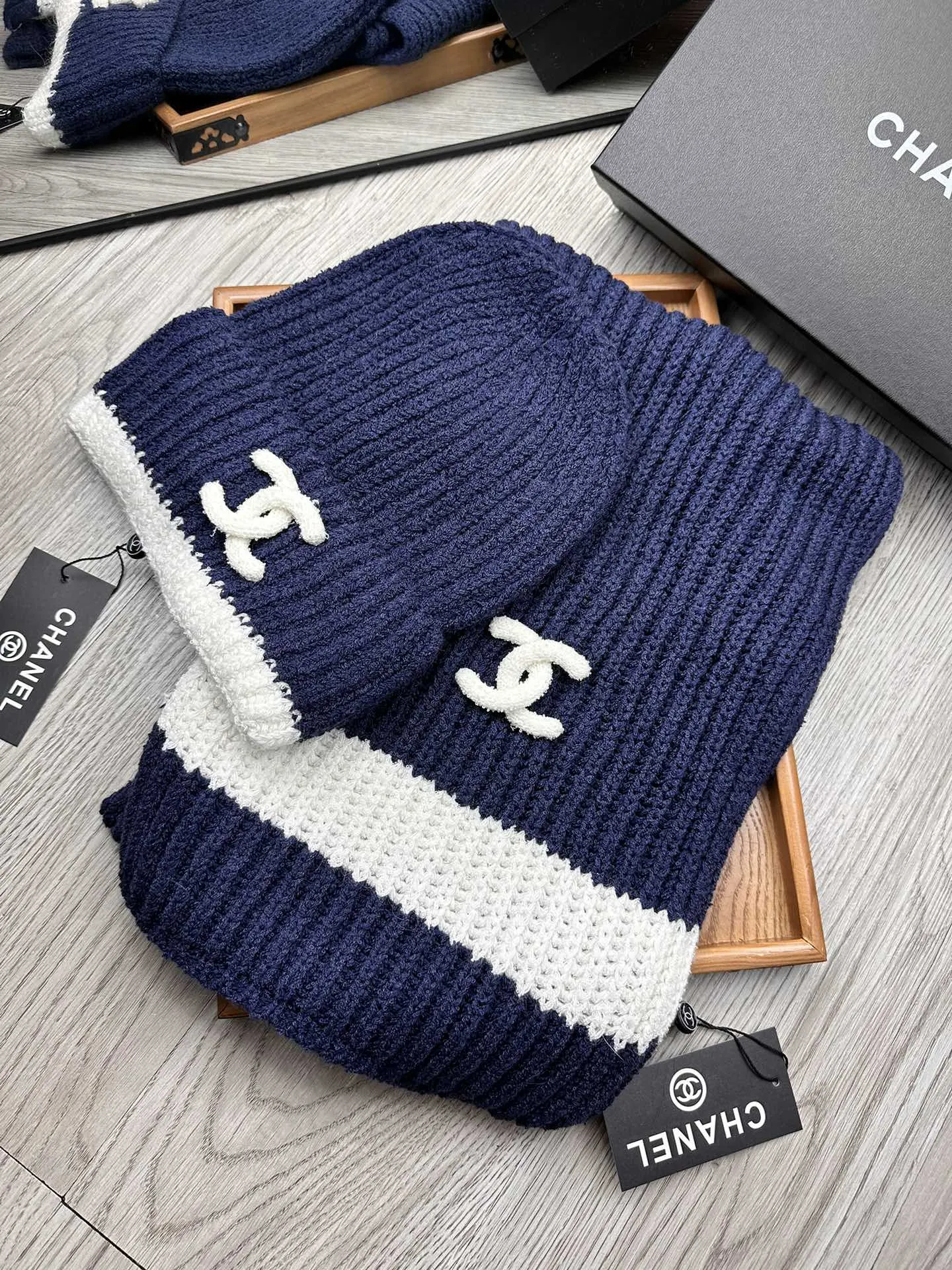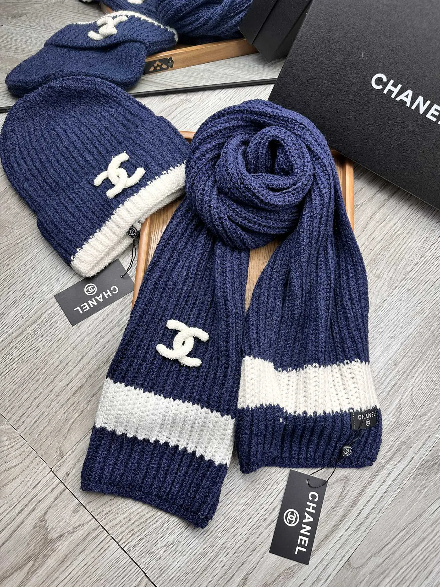 Wholeale cheap replica Chanel Hat and Scarf Set #1396569 prices $52.00 USD online, outlet ! Wholesale new arrivals cheap fake Chanel Hat and Scarf and Glove Set enjoy free shipping and 66%-OFF with best quality! The hot on sale style Chanel Hat and Scarf Set #1396569.