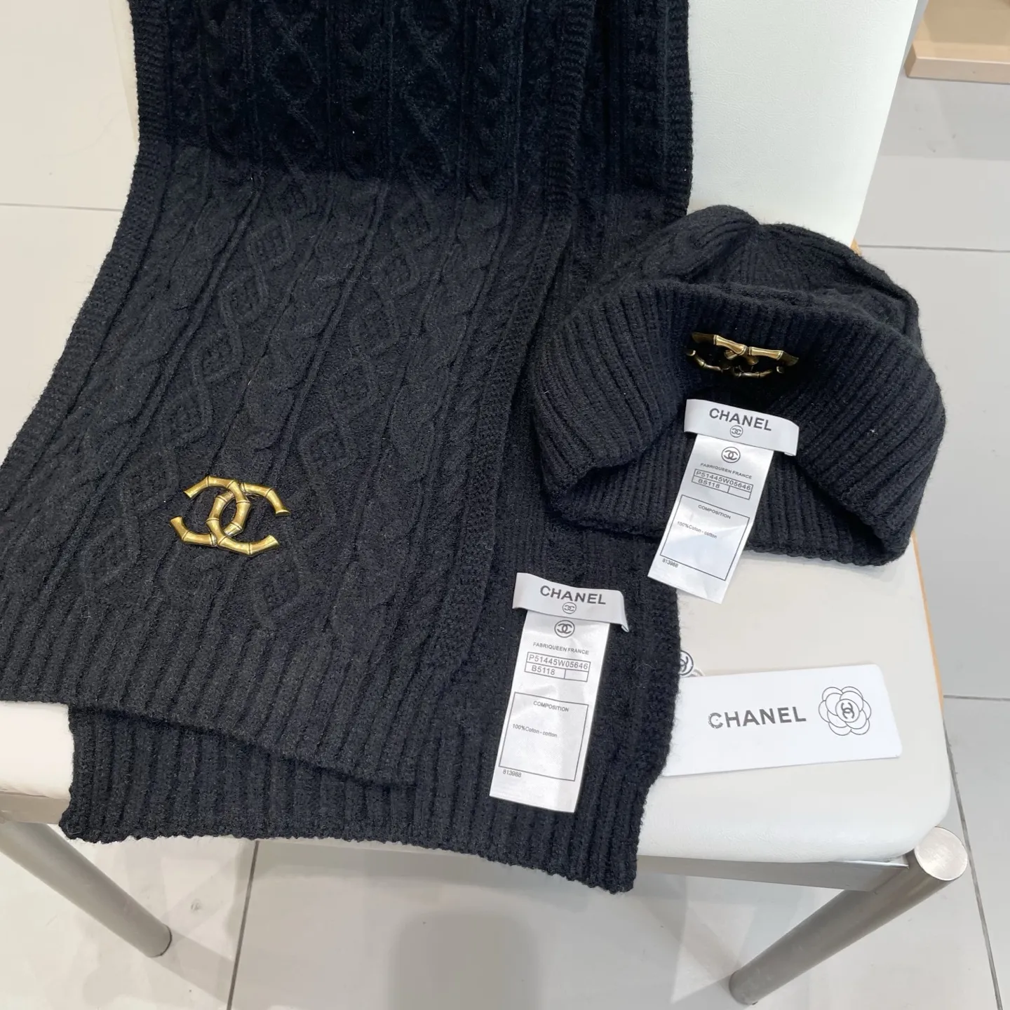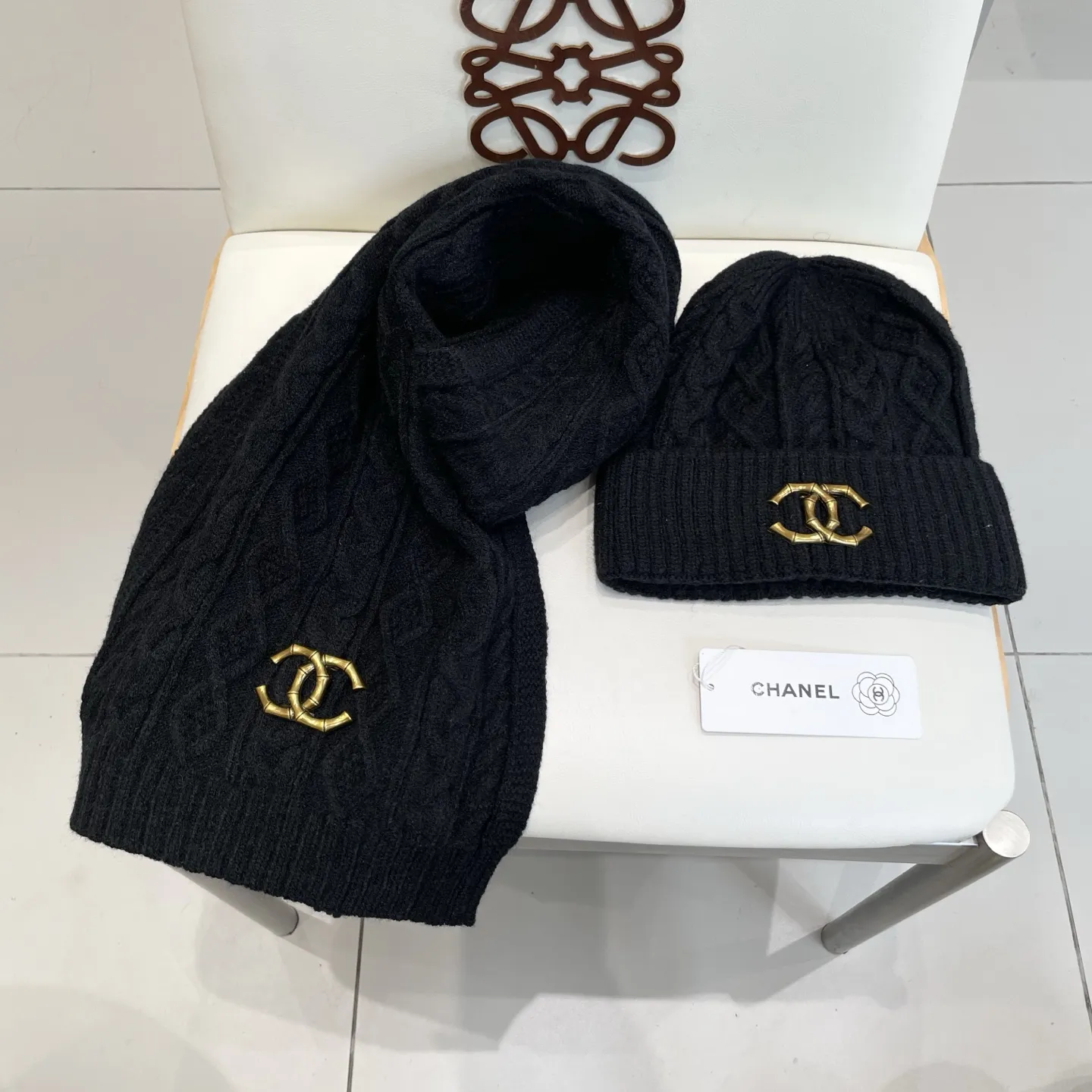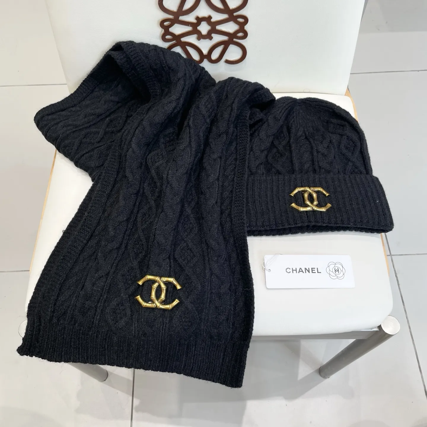 Wholeale cheap replica Chanel Hat and Scarf Set #1396590 prices $48.00 USD online, outlet ! Wholesale new arrivals cheap fake Chanel Hat and Scarf and Glove Set enjoy free shipping and 66%-OFF with best quality! The hot on sale style Chanel Hat and Scarf Set #1396590.