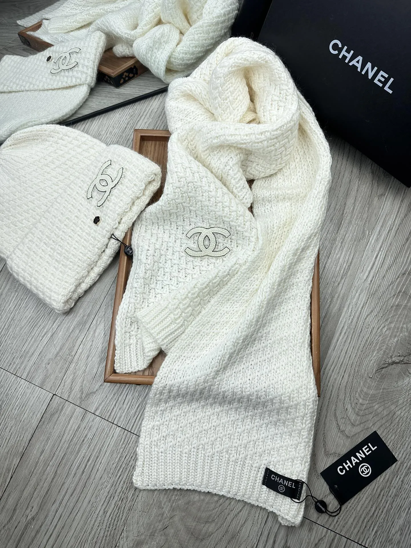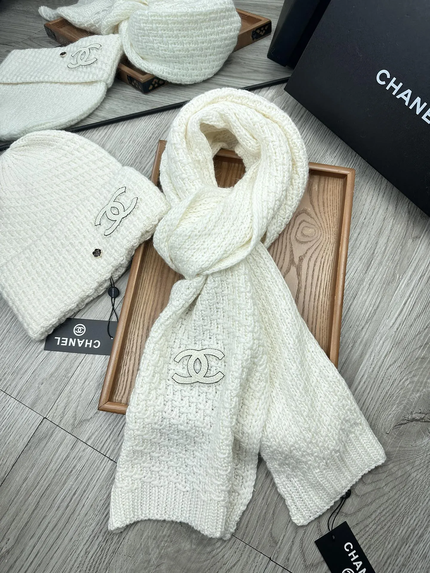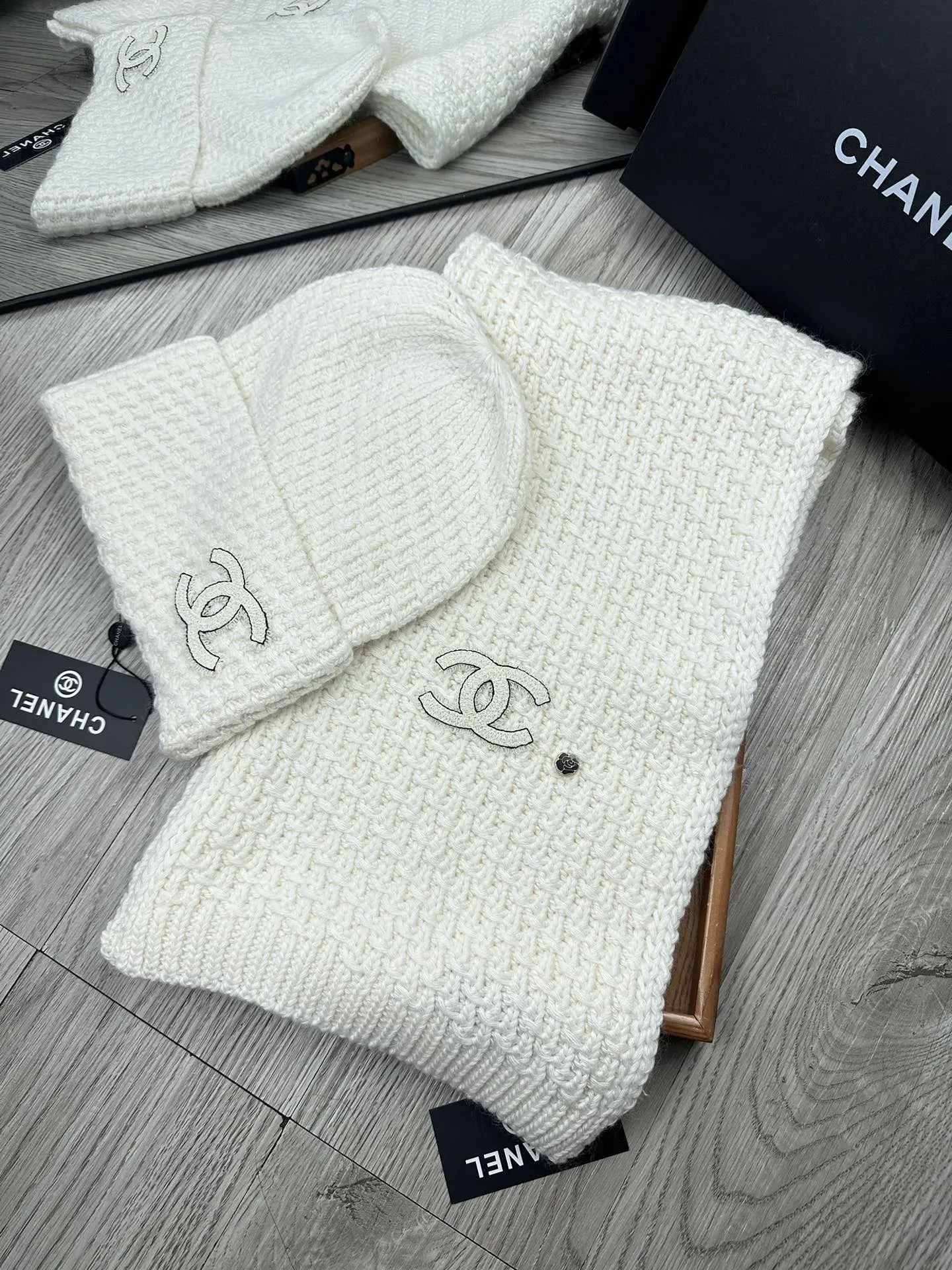 Wholeale cheap replica Chanel Hat and Scarf Set #1401274 prices $52.00 USD online, outlet ! Wholesale new arrivals cheap fake Chanel Hat and Scarf and Glove Set enjoy free shipping and 66%-OFF with best quality! The hot on sale style Chanel Hat and Scarf Set #1401274.