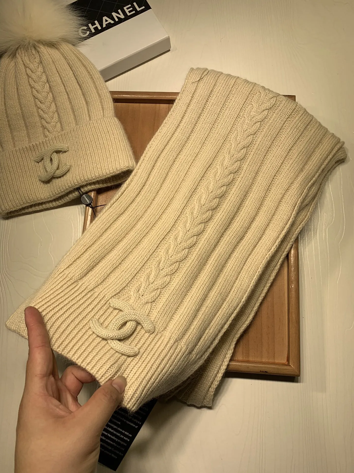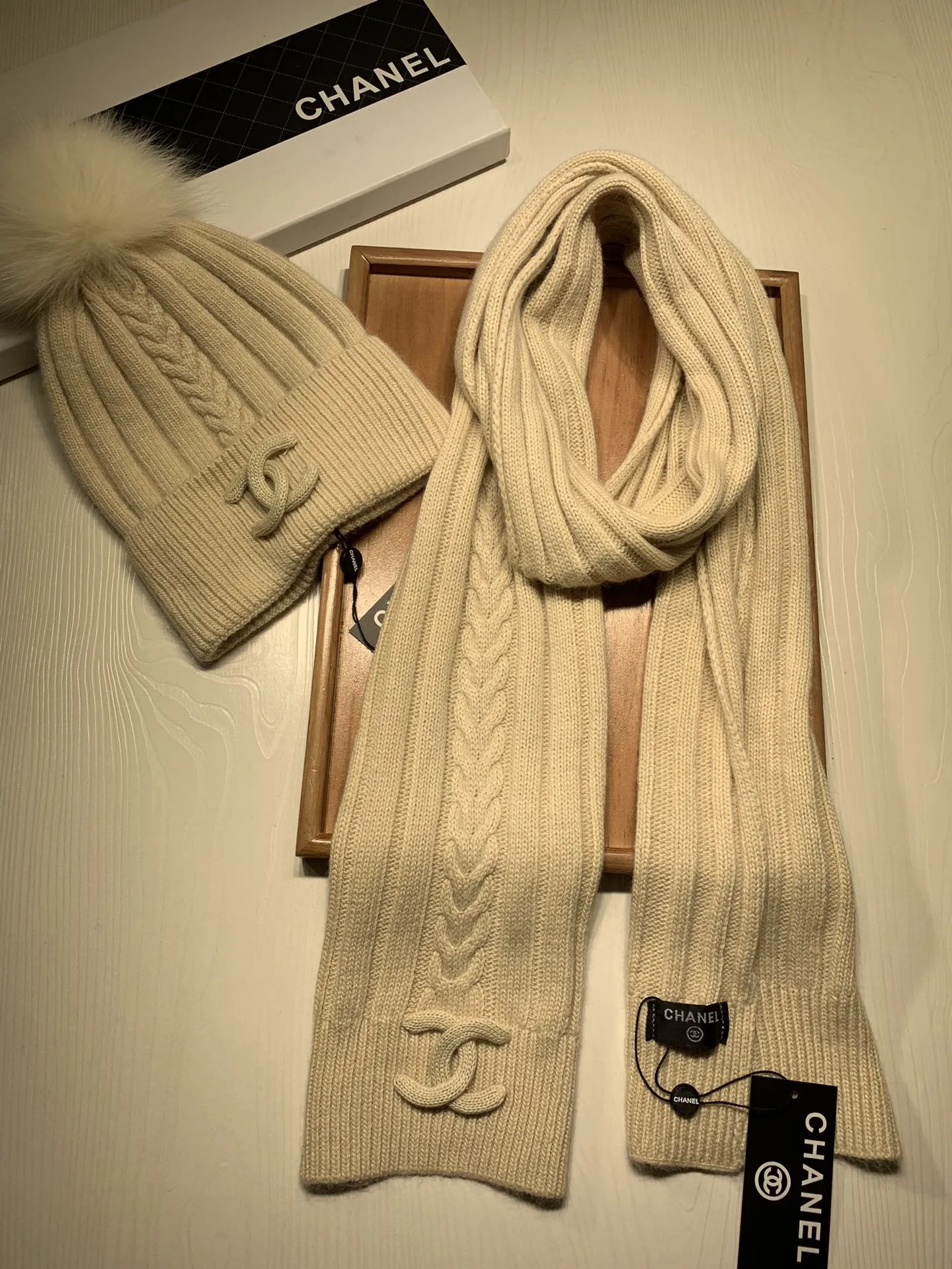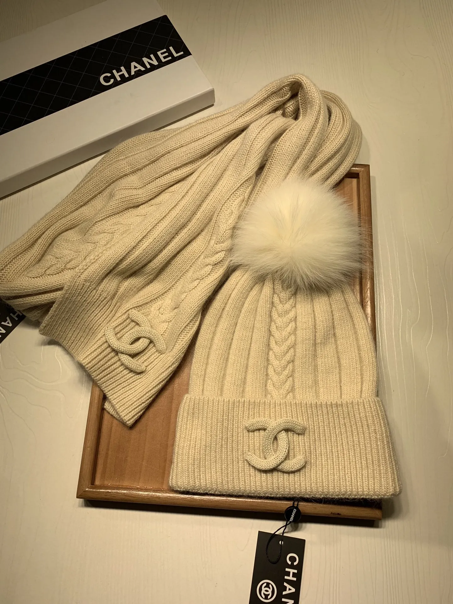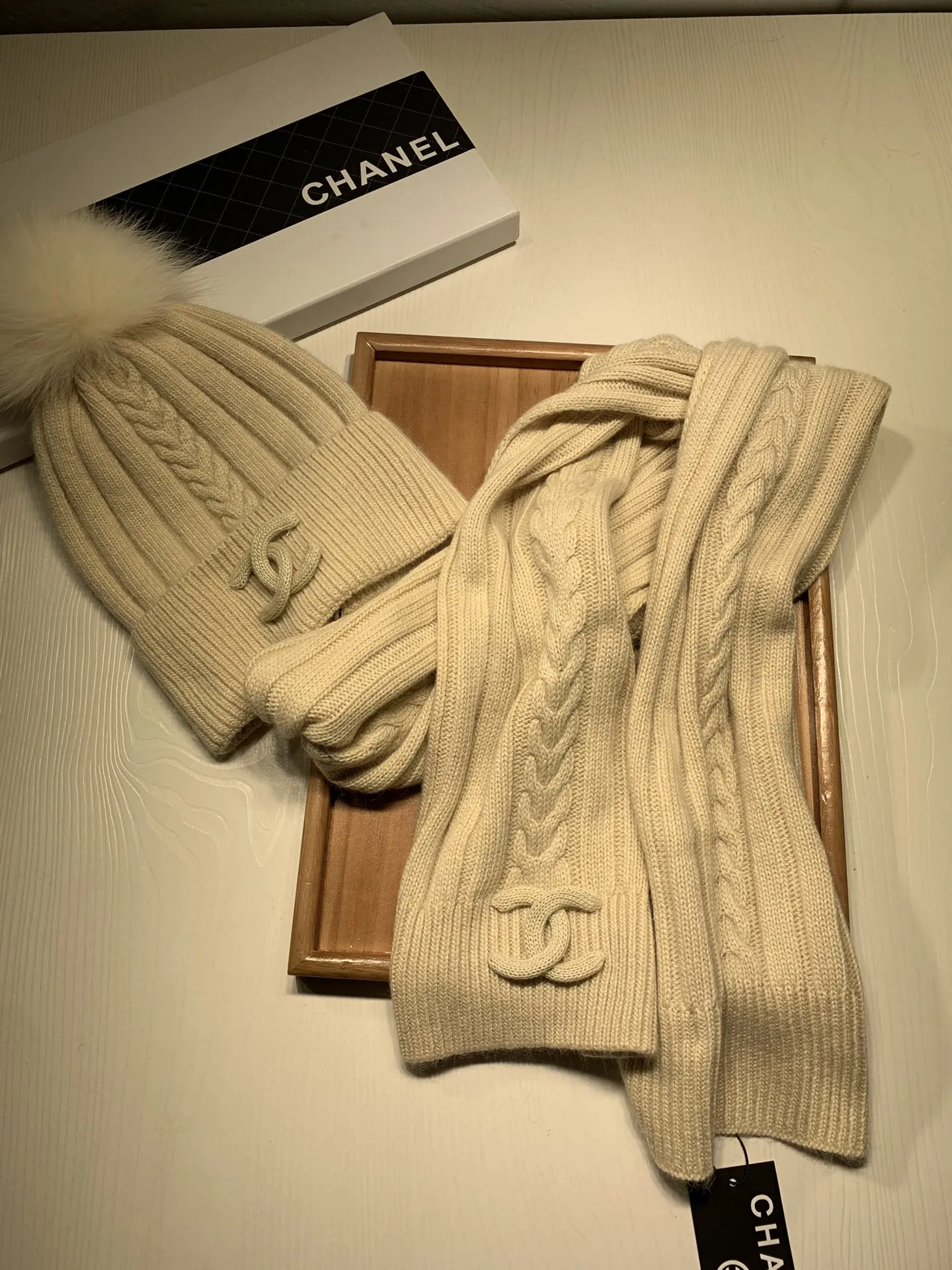 Wholeale cheap replica Chanel Hat and Scarf Set #1407456 prices $64.00 USD online, outlet ! Wholesale new arrivals cheap fake Chanel Hat and Scarf and Glove Set enjoy free shipping and 66%-OFF with best quality! The hot on sale style Chanel Hat and Scarf Set #1407456.