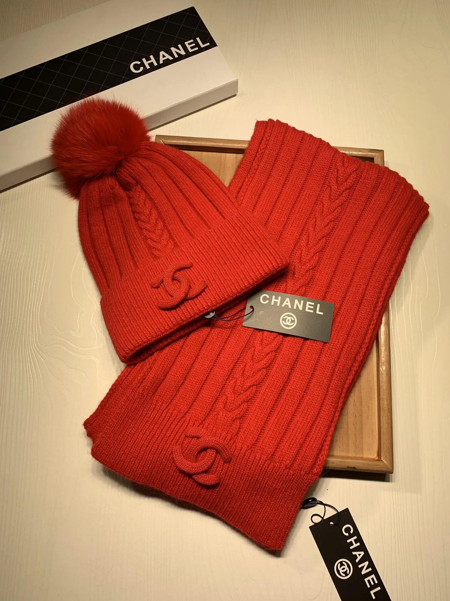 Wholeale cheap replica Chanel Hat and Scarf Set #1407457 prices $64.00 USD online, outlet ! Wholesale new arrivals cheap fake Chanel Hat and Scarf and Glove Set enjoy free shipping and 66%-OFF with best quality! The hot on sale style Chanel Hat and Scarf Set #1407457.