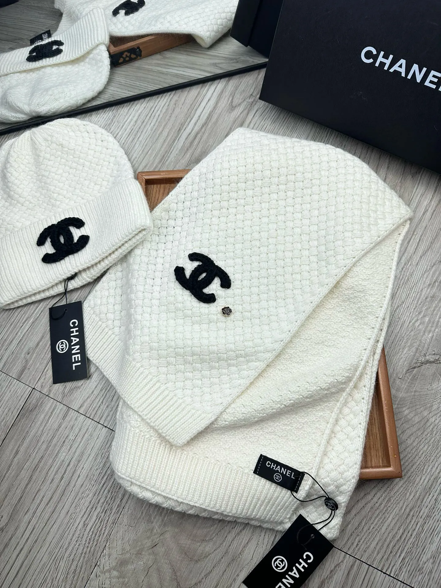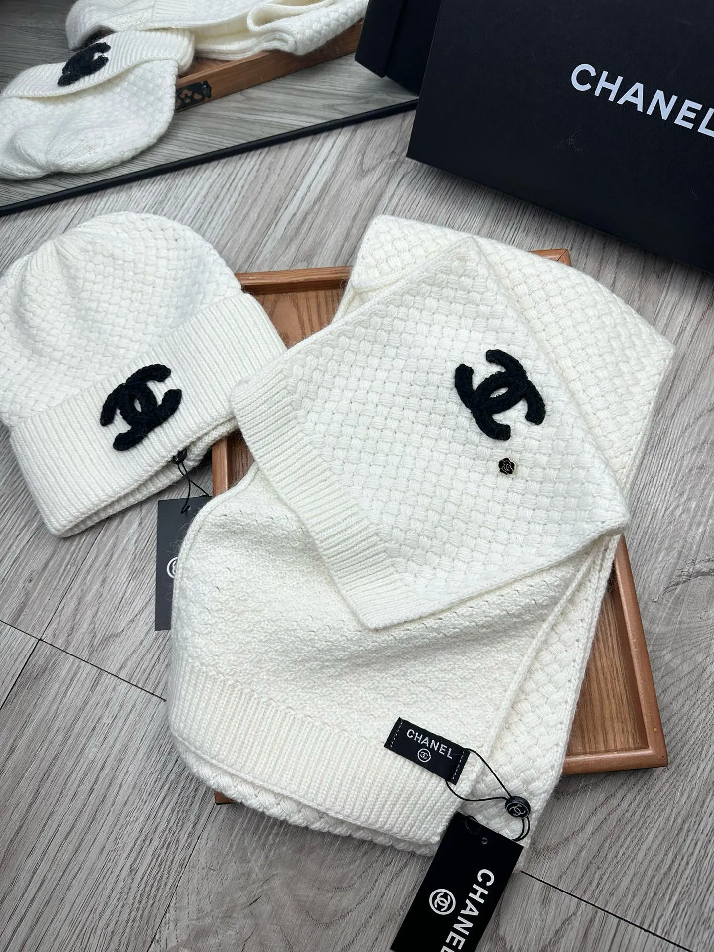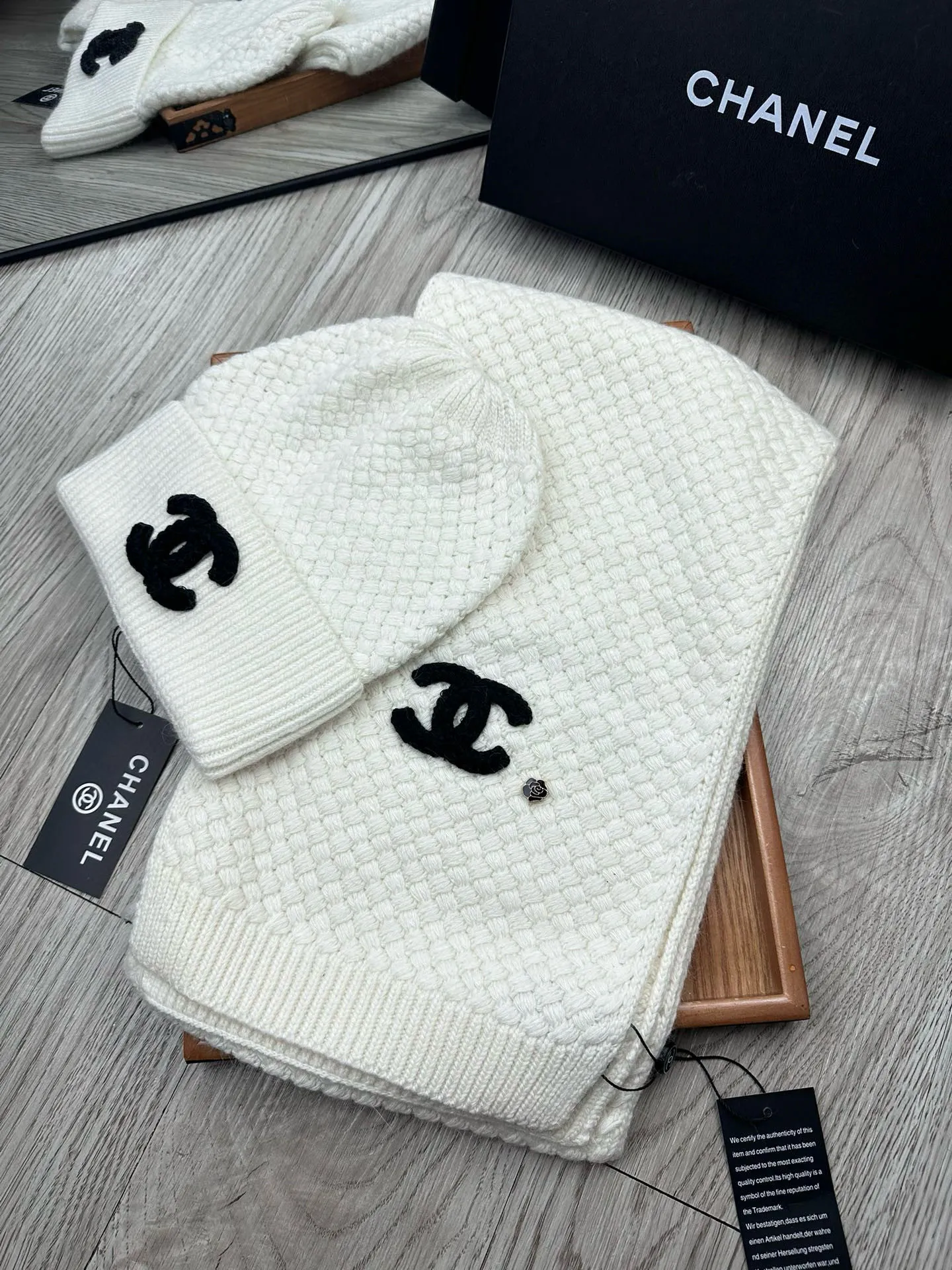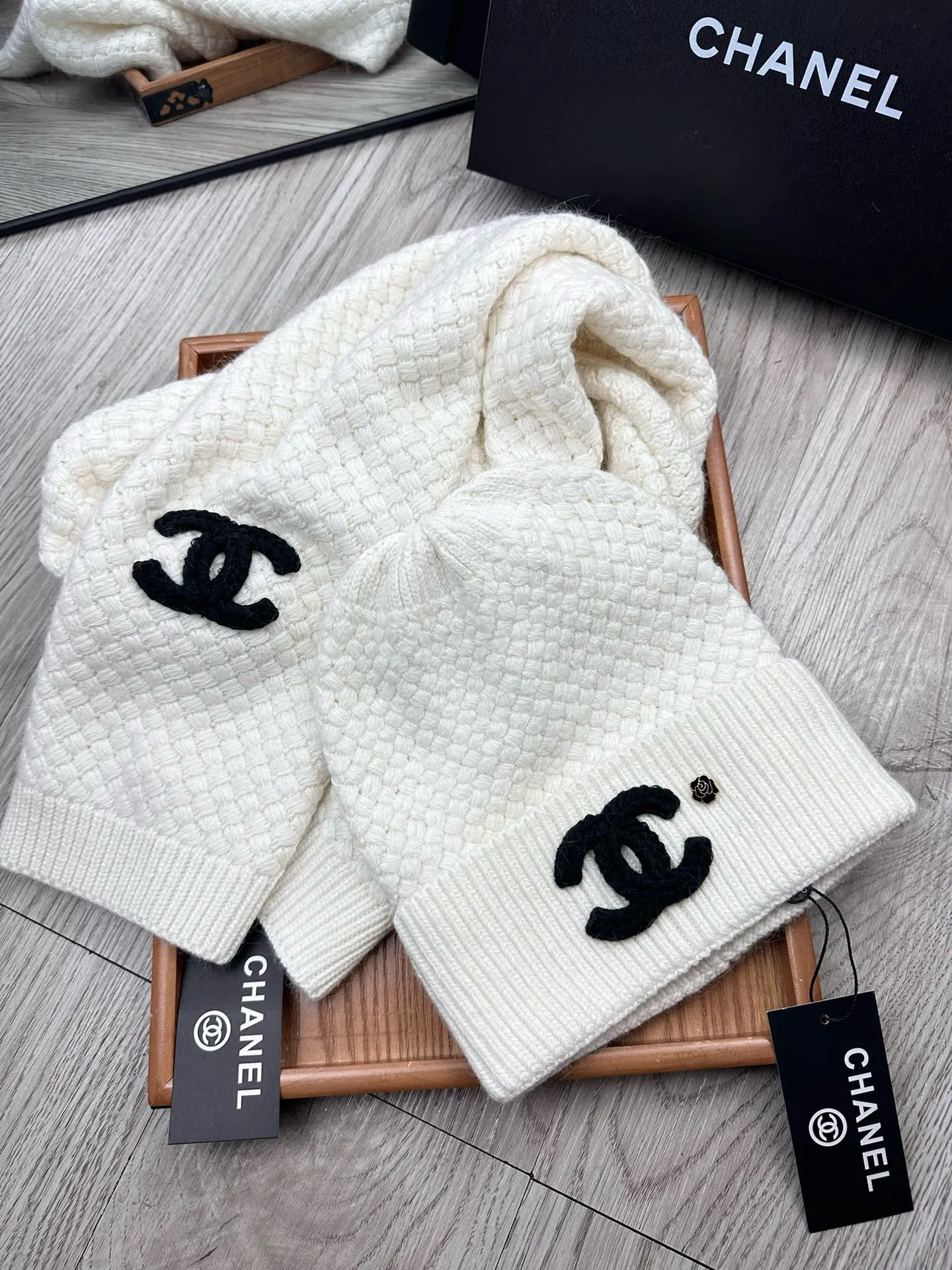 Wholeale cheap replica Chanel Hat and Scarf Set #1407494 prices $52.00 USD online, outlet ! Wholesale new arrivals cheap fake Chanel Hat and Scarf and Glove Set enjoy free shipping and 66%-OFF with best quality! The hot on sale style Chanel Hat and Scarf Set #1407494.