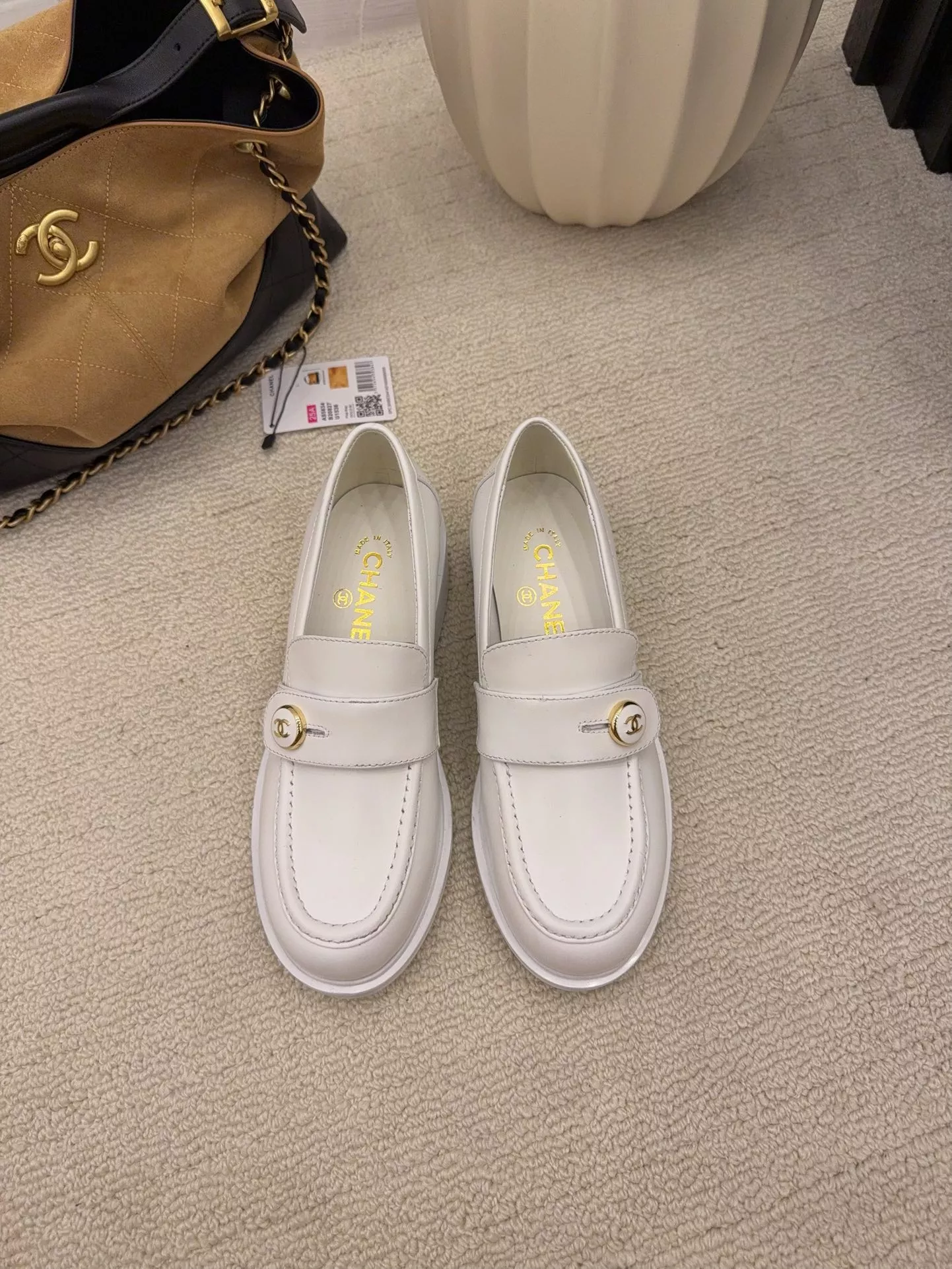Wholeale cheap replica Chanel Leather Shoes For Women #1378012 prices $112.00 USD online, outlet Gender WomenSize US 5=EUR(35), US 5.5=EUR(36), US 6=EUR(37), US 7=EUR(38), US 8=EUR(39)! Wholesale new arrivals cheap fake Chanel Leather Shoes enjoy free shipping and 66%-OFF with best quality! The hot on sale style Chanel Leather Shoes For Women #1378012.
