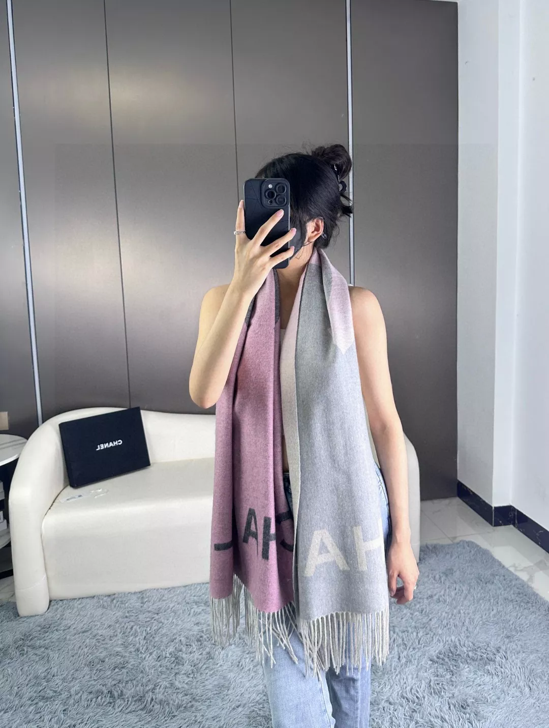 Wholeale cheap replica Chanel Scarves #1379843 prices $60.00 USD online, outlet Size 180*70cm! Wholesale new arrivals cheap fake Chanel Scarves enjoy free shipping and 66%-OFF with best quality! The hot on sale style Chanel Scarves #1379843.