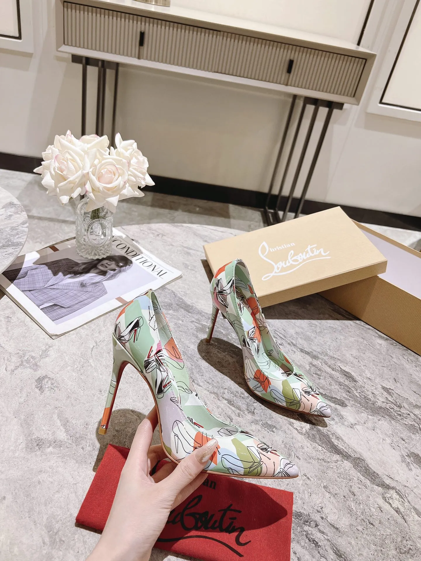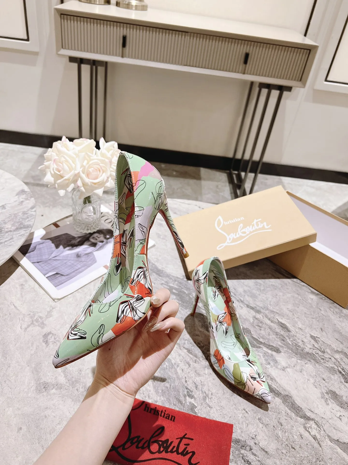Wholeale cheap replica Christian Louboutin High-heeled shoes For Women #1409504 prices $98.00 USD online, outlet Gender WomenSize US 5=EUR(35), US 5.5=EUR(36), US 6=EUR(37), US 7=EUR(38), US 8=EUR(39), US 8.5=EUR(40)Heels 10.5 CM! Wholesale new arrivals cheap fake Christian Louboutin High-heeled shoes enjoy free shipping and 66%-OFF with best quality! The hot on sale style Christian Louboutin High-heeled shoes For Women #1409504.