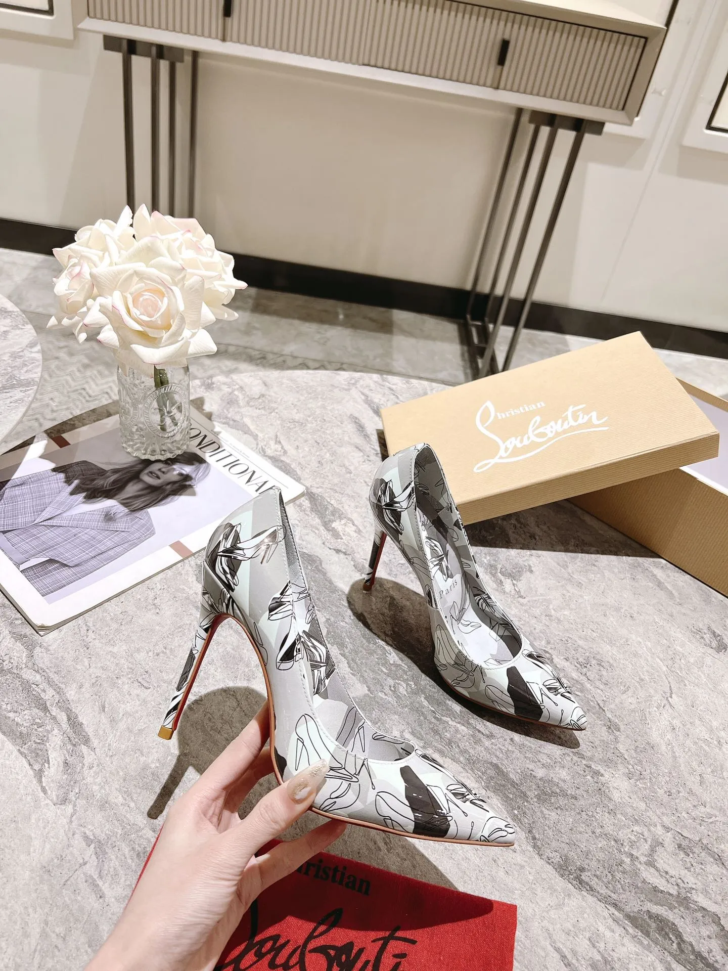 Wholeale cheap replica Christian Louboutin High-heeled shoes For Women #1409508 prices $98.00 USD online, outlet Gender WomenSize US 5=EUR(35), US 5.5=EUR(36), US 6=EUR(37), US 7=EUR(38), US 8=EUR(39), US 8.5=EUR(40)Heels 10.5 CM! Wholesale new arrivals cheap fake Christian Louboutin High-heeled shoes enjoy free shipping and 66%-OFF with best quality! The hot on sale style Christian Louboutin High-heeled shoes For Women #1409508.