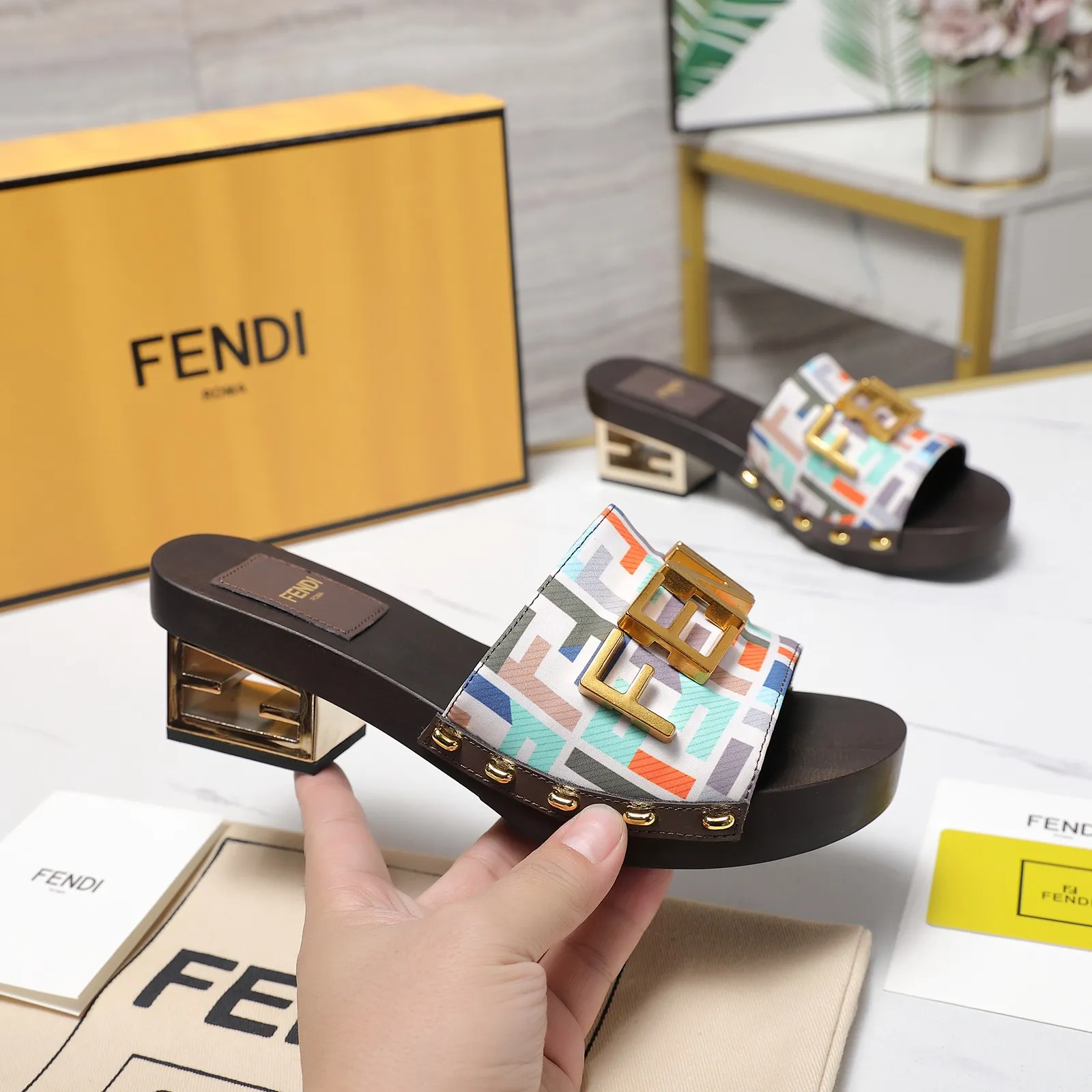 The best wholesale store offer cheap replica Fendi Slippers items Gender WomenSize US 5=EUR(35), US 5.5=EUR(36), US 6=EUR(37), US 7=EUR(38), US 8=EUR(39)Heels 4.5 CM online!!