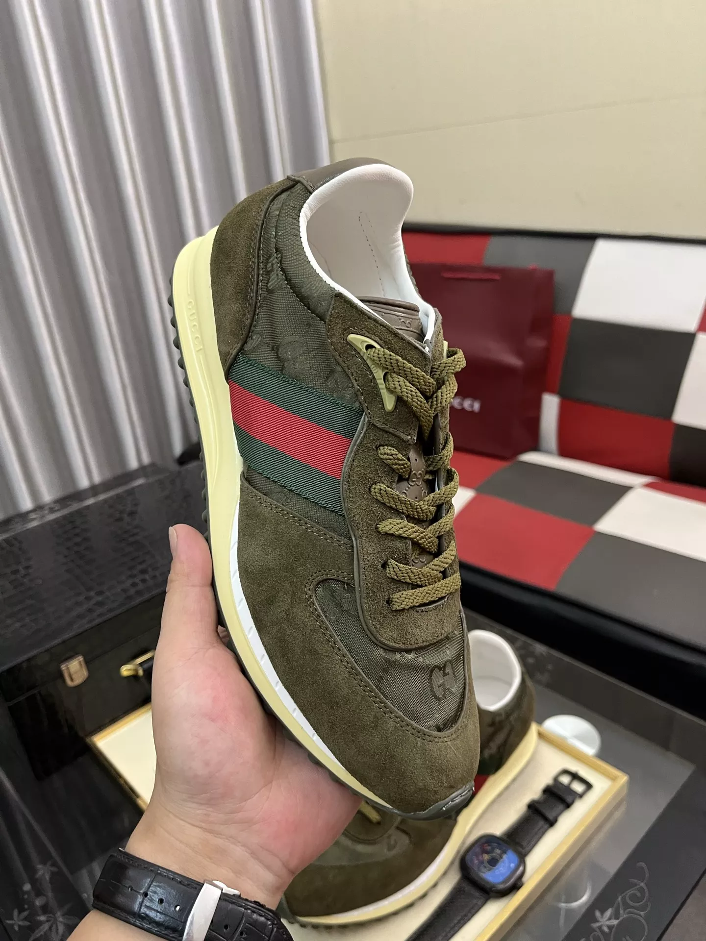 Wholeale cheap replica Gucci Casual Shoes For Men #1380813 prices $108.00 USD online, outlet Gender MenSize US 4=EUR(38), US 5=EUR(39), US 6=EUR(40), US 7=EUR(41), US 8=EUR(42), US 9=EUR(43), US 10=EUR(44)! Wholesale new arrivals cheap fake Gucci Casual Shoes enjoy free shipping and 66%-OFF with best quality! The hot on sale style Gucci Casual Shoes For Men #1380813.