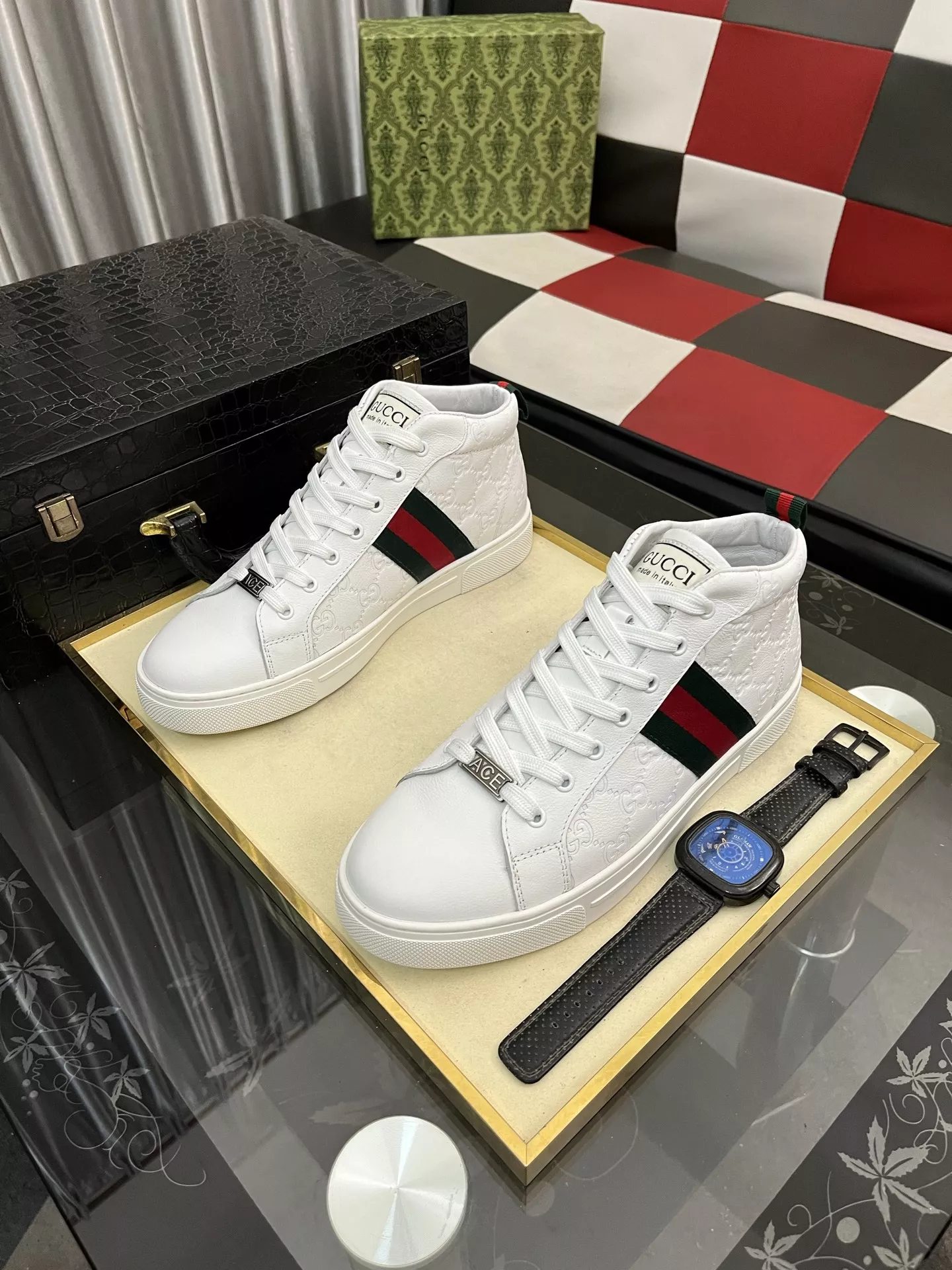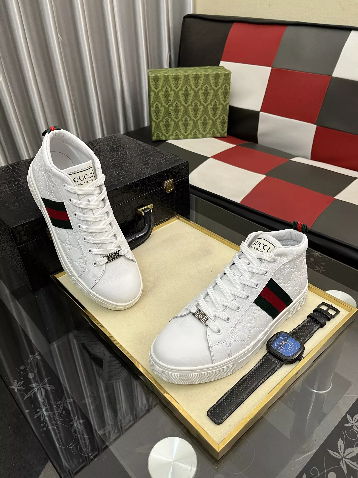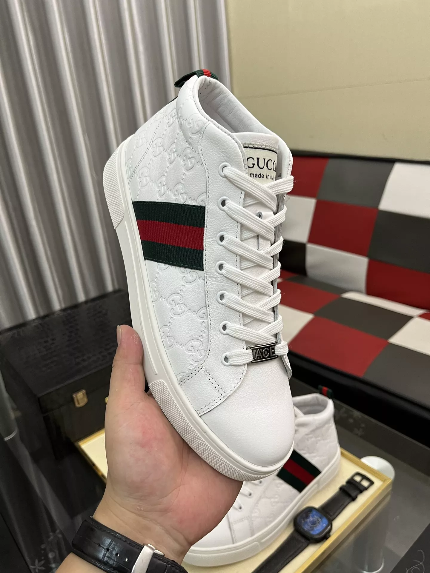 The best wholesale store offer cheap replica Gucci High Tops Shoes items Gender MenSize US 4=EUR(38), US 5=EUR(39), US 6=EUR(40), US 7=EUR(41), US 8=EUR(42), US 9=EUR(43), US 10=EUR(44) online!!