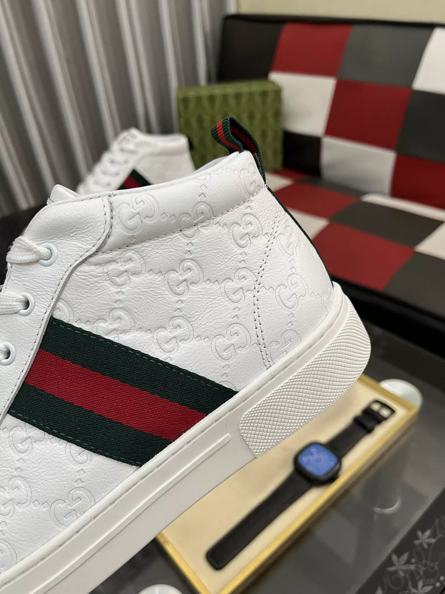 Wholeale cheap replica Gucci High Tops Shoes For Men #1387722 prices $88.00 USD online, outlet Gender MenSize US 4=EUR(38), US 5=EUR(39), US 6=EUR(40), US 7=EUR(41), US 8=EUR(42), US 9=EUR(43), US 10=EUR(44)! Wholesale new arrivals cheap fake Gucci High Tops Shoes enjoy free shipping and 66%-OFF with best quality! The hot on sale style Gucci High Tops Shoes For Men #1387722.
