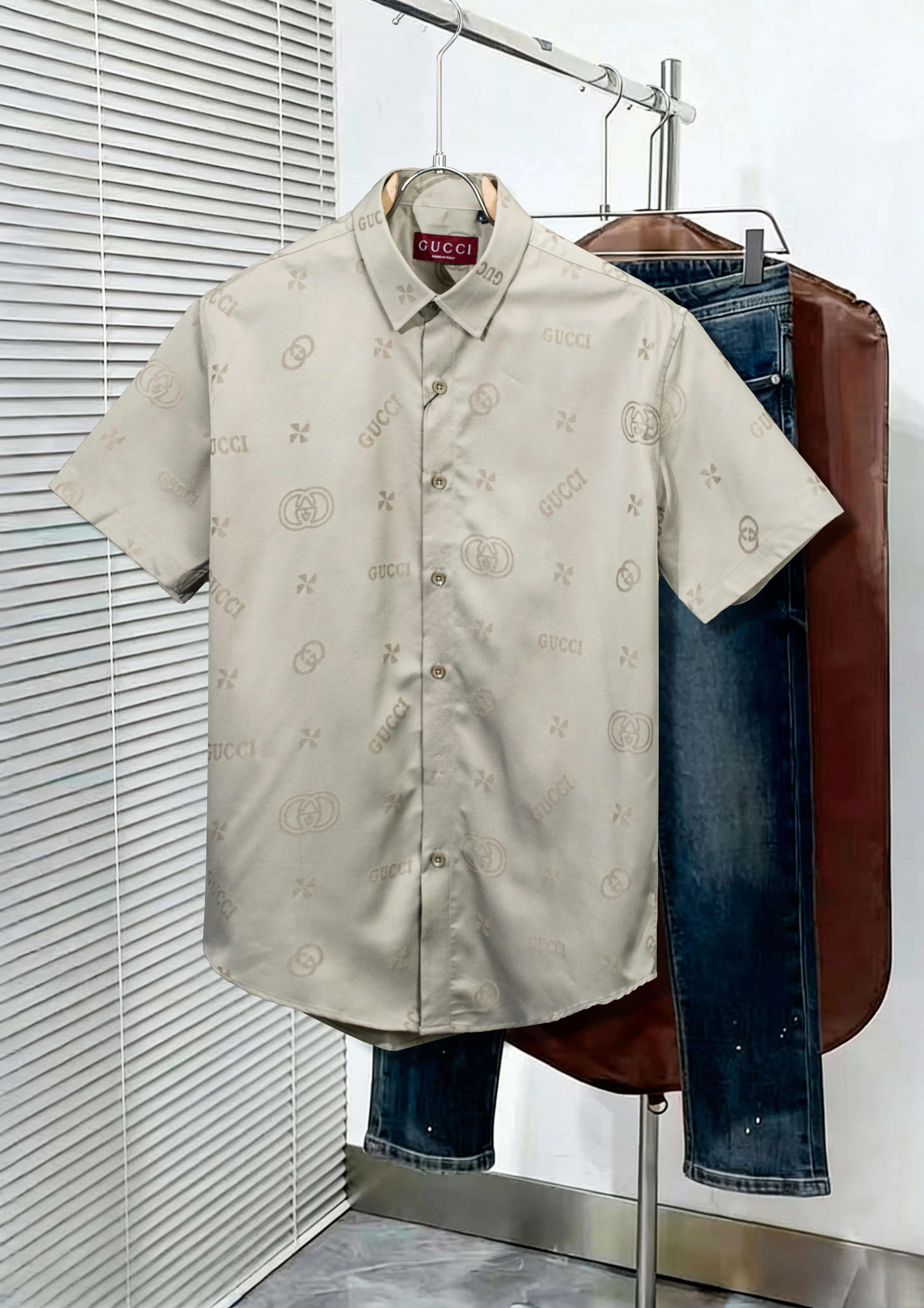 Wholeale cheap replica Gucci Shirts Short Sleeved For Men #1428995 prices $45.00 USD online, outlet Sleeved Short SleevedGender MenSize M, L, XL, XXL, 3XL! Wholesale new arrivals cheap fake Gucci Shirts enjoy free shipping and 66%-OFF with best quality! The hot on sale style Gucci Shirts Short Sleeved For Men #1428995.