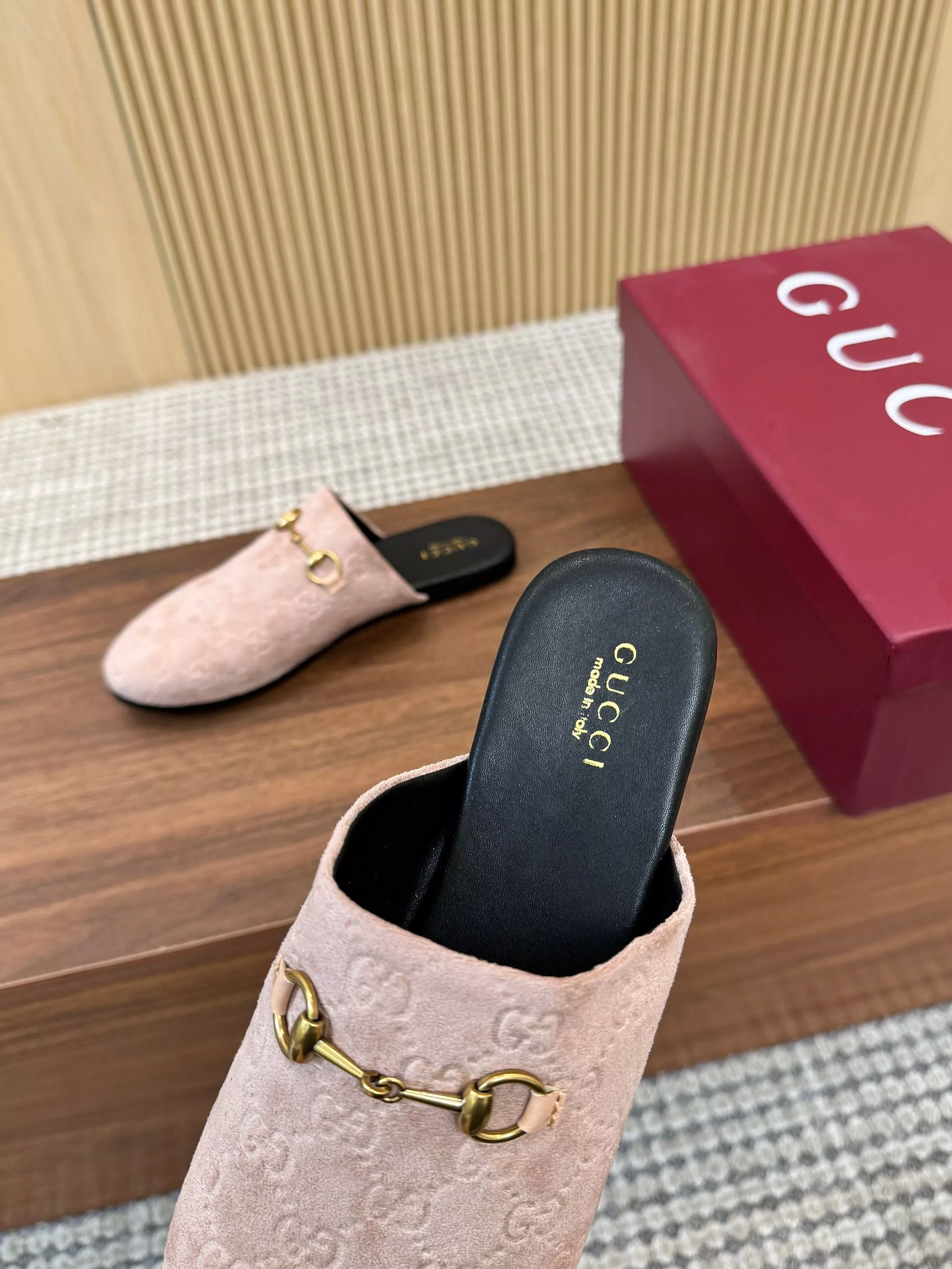 Wholeale cheap replica Gucci Slippers For Women #1377879 prices $88.00 USD online, outlet Gender WomenSize US 5=EUR(35), US 5.5=EUR(36), US 6=EUR(37), US 7=EUR(38), US 8=EUR(39), US 8.5=EUR(40), US 9.5=EUR(41), US 10=EUR(42)! Wholesale new arrivals cheap fake Gucci Slippers enjoy free shipping and 66%-OFF with best quality! The hot on sale style Gucci Slippers For Women #1377879.