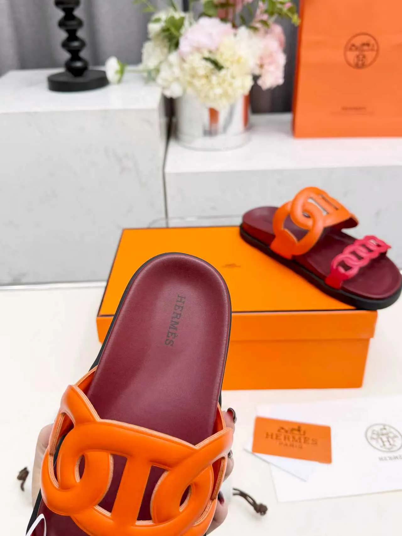 The best wholesale store offer cheap replica Hermes Slippers items Gender WomenSize US 5=EUR(35), US 5.5=EUR(36), US 6=EUR(37), US 7=EUR(38), US 8=EUR(39), US 8.5=EUR(40) online!!