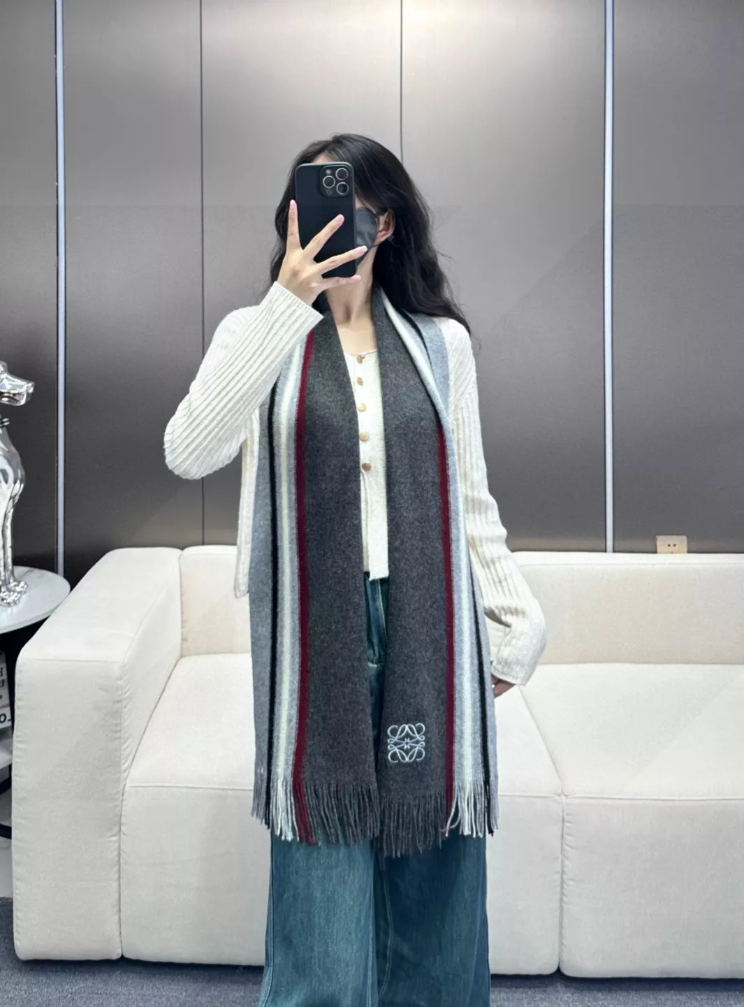 Wholeale cheap replica LOEWE Scarf #1379301 prices $64.00 USD online, outlet Size 180*30cm! Wholesale new arrivals cheap fake LOEWE Scarf enjoy free shipping and 66%-OFF with best quality! The hot on sale style LOEWE Scarf #1379301.