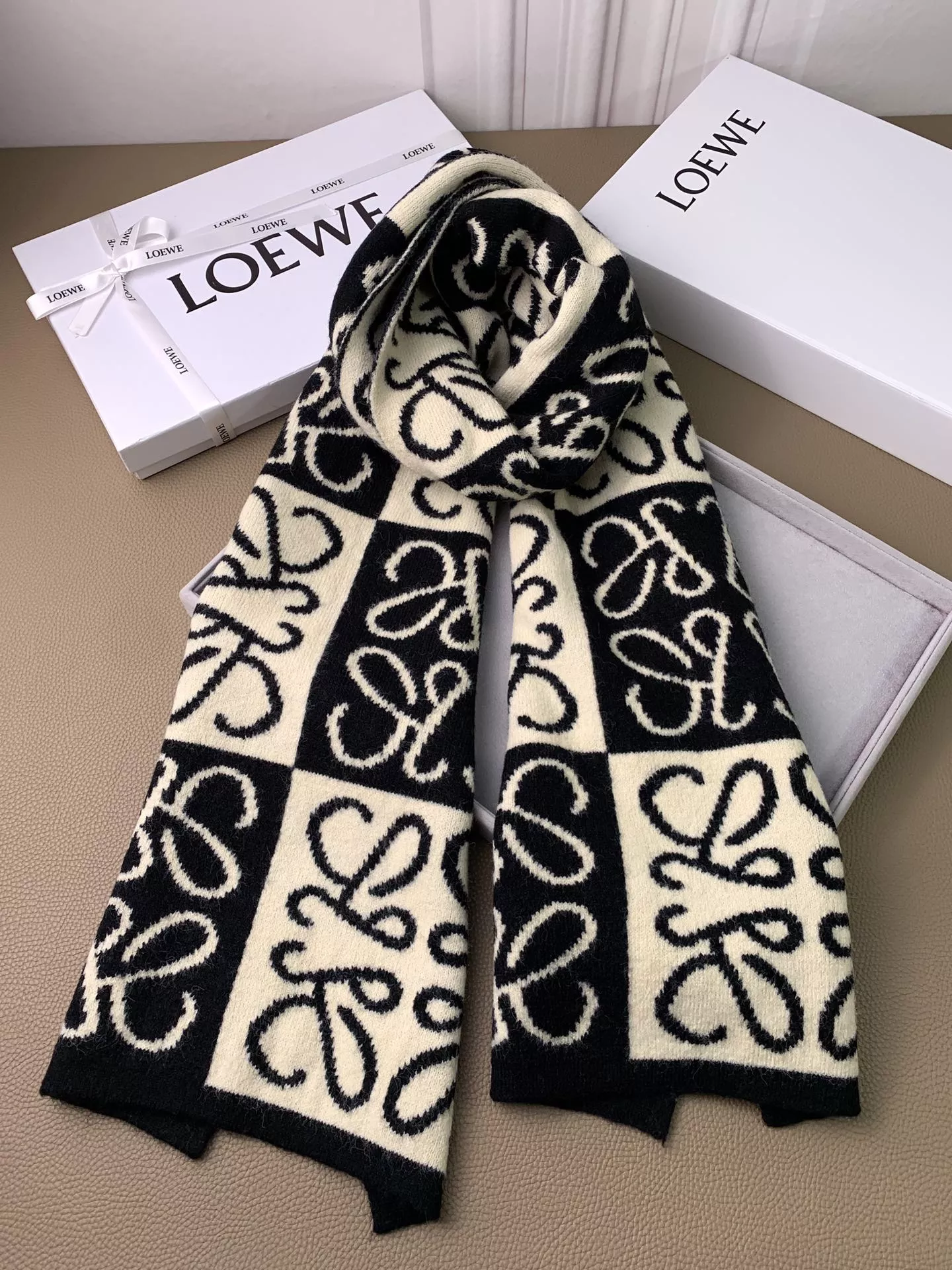 Wholeale cheap replica LOEWE Scarf #1379304 prices $64.00 USD online, outlet Size 190*30cm! Wholesale new arrivals cheap fake LOEWE Scarf enjoy free shipping and 66%-OFF with best quality! The hot on sale style LOEWE Scarf #1379304.