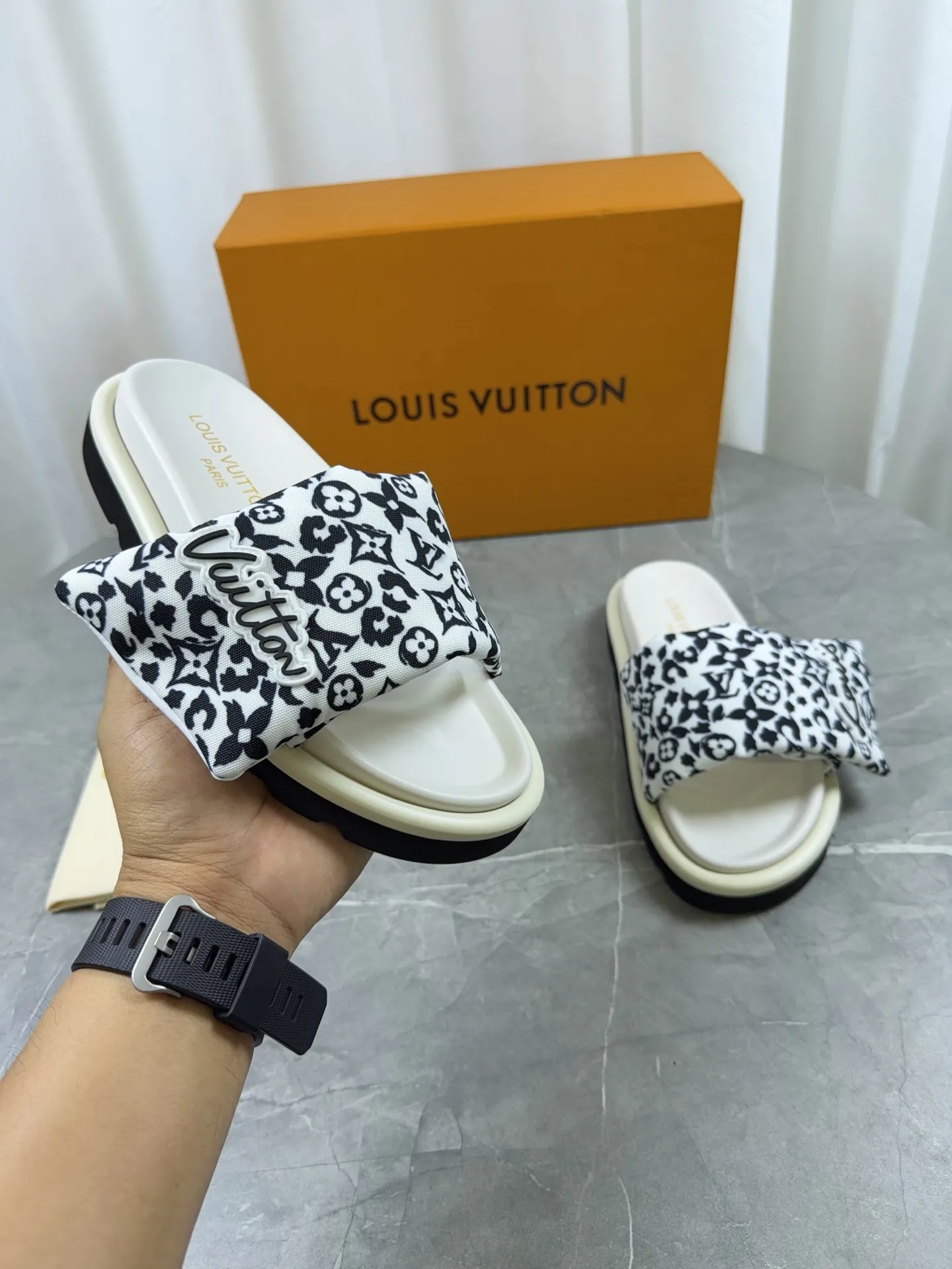 The best wholesale store offer cheap replica Louis Vuitton Slippers items Gender MenSize US 4=EUR(38), US 5=EUR(39), US 6=EUR(40), US 7=EUR(41), US 8=EUR(42), US 9=EUR(43), US 10=EUR(44) online!!
