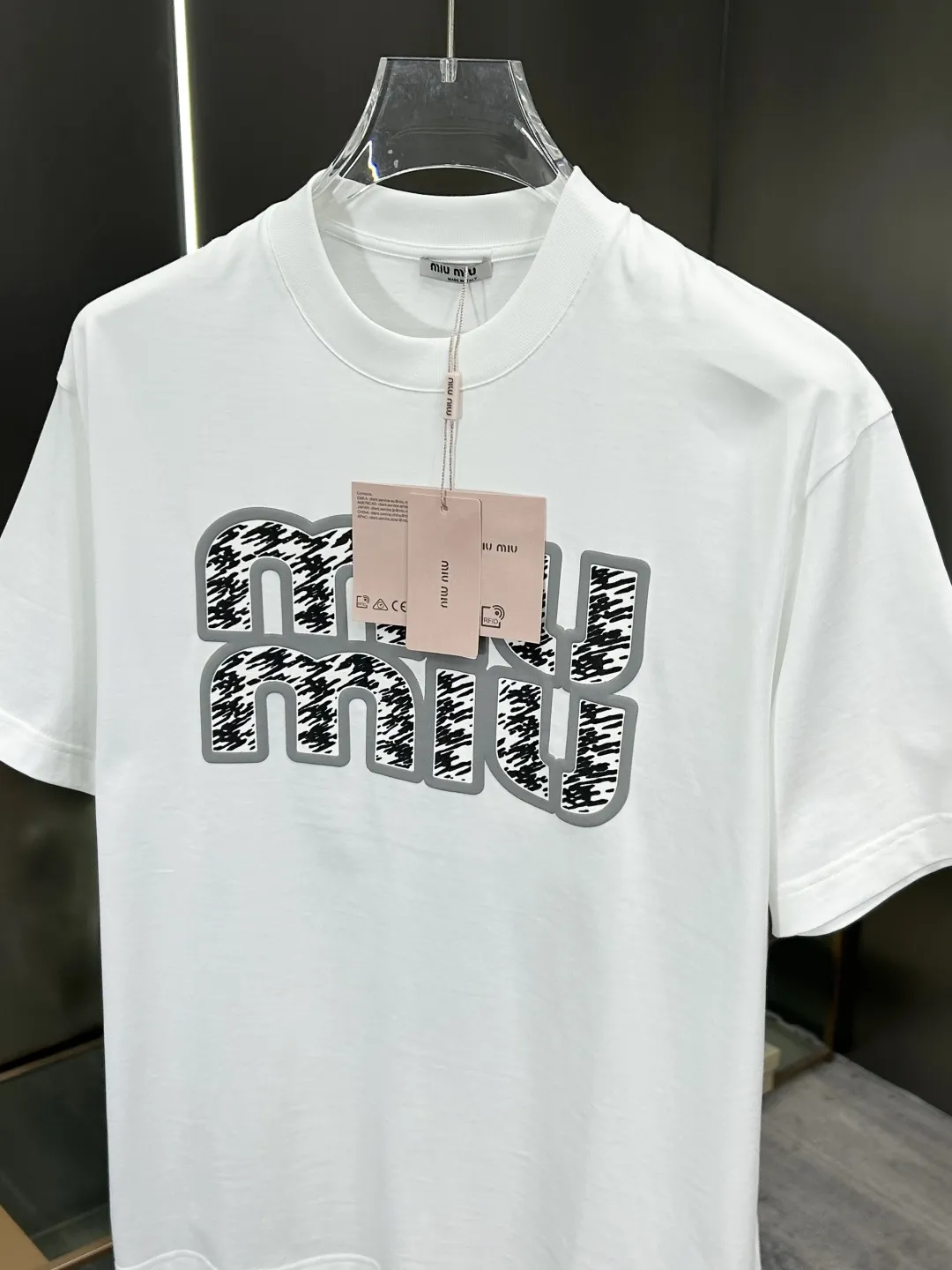 Wholeale cheap replica MIU MIU T-Shirts Short Sleeved For Men #1430379 prices $82.00 USD online, outlet Sleeved Short SleevedGender MenSize M, L, XL, XXL, 3XL! Wholesale new arrivals cheap fake MIU MIU T-Shirts enjoy free shipping and 66%-OFF with best quality! The hot on sale style MIU MIU T-Shirts Short Sleeved For Men #1430379.