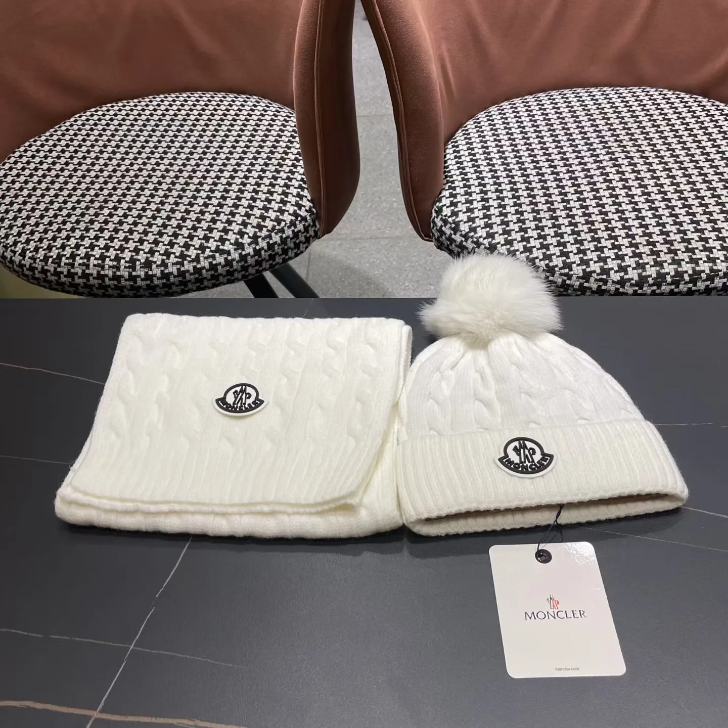 Wholeale cheap replica Moncler Hat and Scarf Set #1391504 prices $60.00 USD online, outlet ! Wholesale new arrivals cheap fake Moncler Hat and Scarf and Glove Set enjoy free shipping and 66%-OFF with best quality! The hot on sale style Moncler Hat and Scarf Set #1391504.