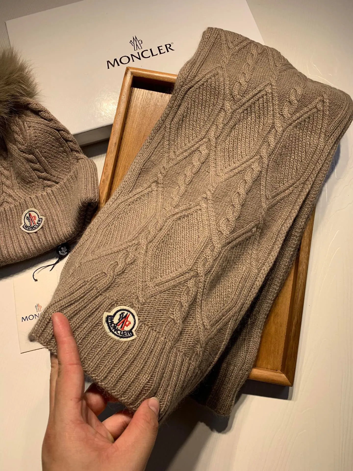 Wholeale cheap replica Moncler Hat and Scarf Set #1407406 prices $60.00 USD online, outlet ! Wholesale new arrivals cheap fake Moncler Hat and Scarf and Glove Set enjoy free shipping and 66%-OFF with best quality! The hot on sale style Moncler Hat and Scarf Set #1407406.