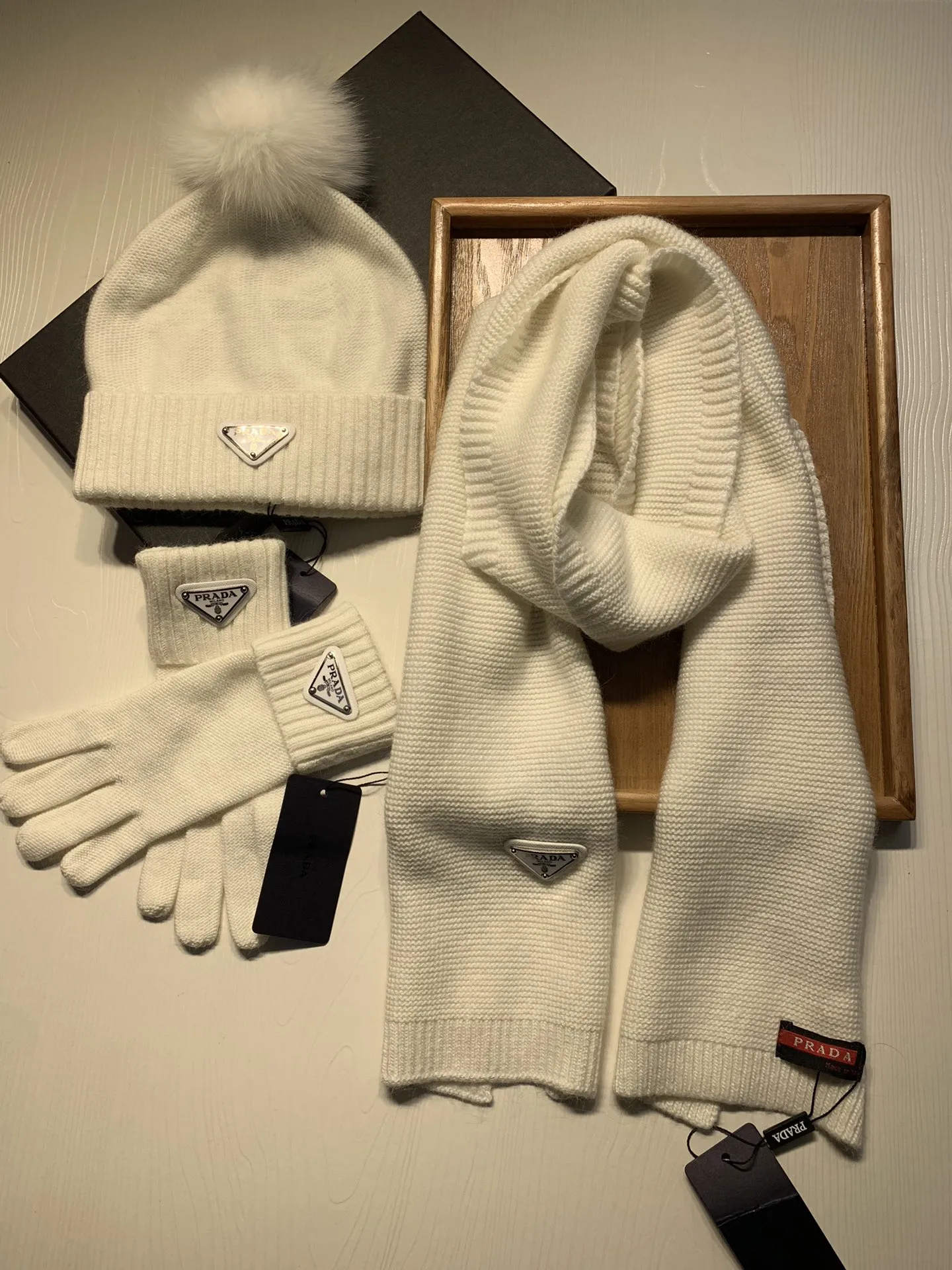 The best wholesale store offer cheap replica Prada Hat and Scarf and Glove Set items online!!