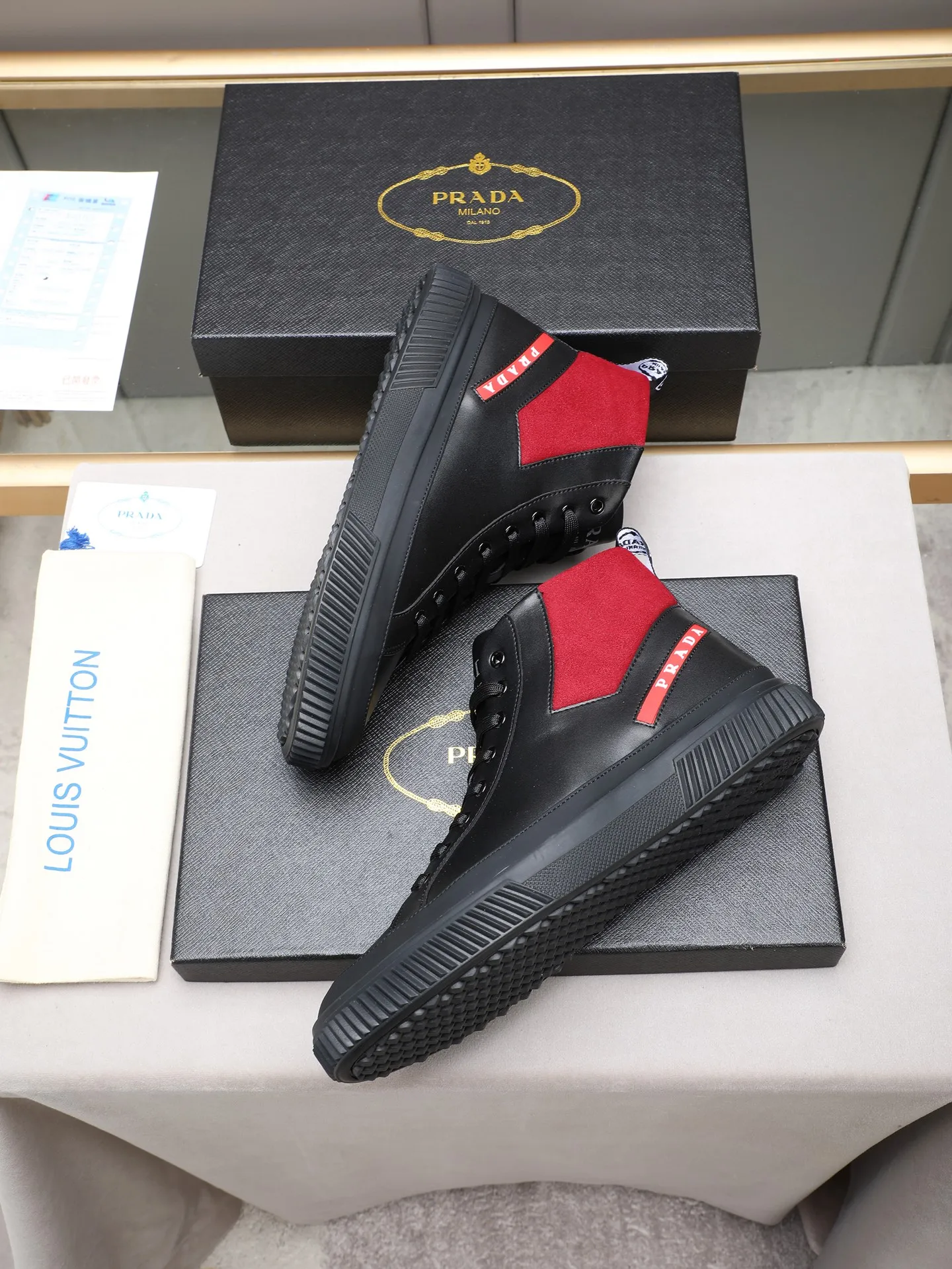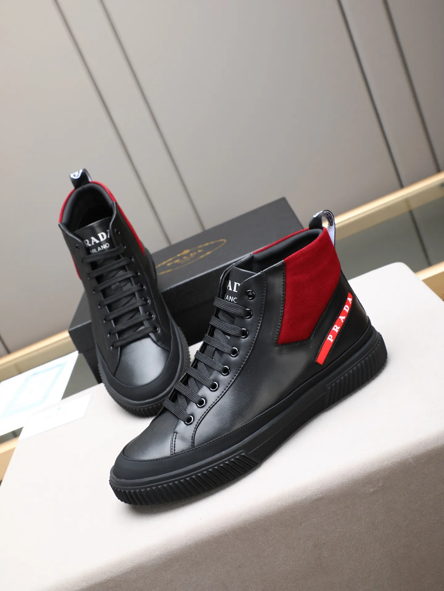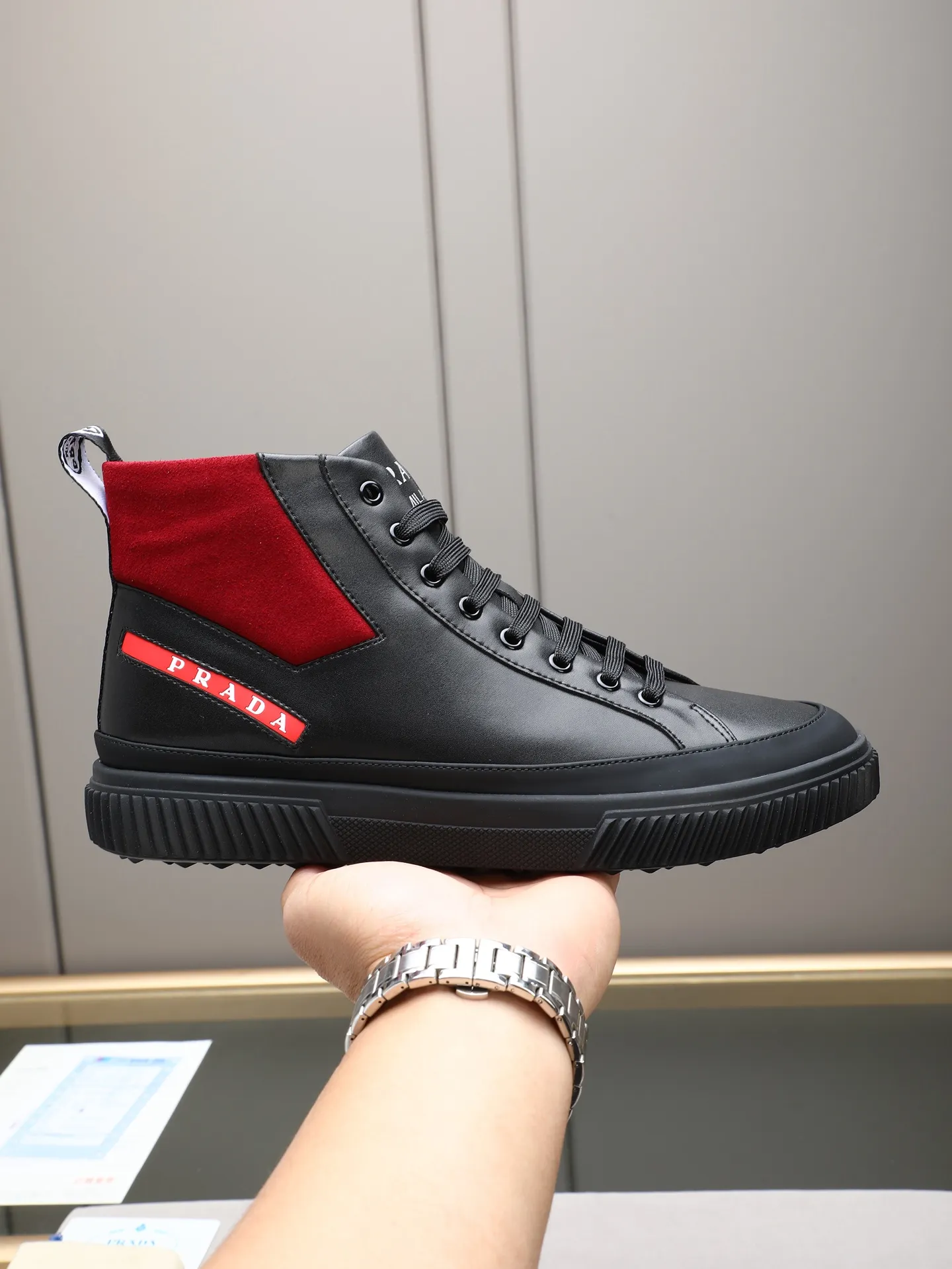 The best wholesale store offer cheap replica Prada High Top Shoes items Gender MenSize US 4=EUR(38), US 5=EUR(39), US 6=EUR(40), US 7=EUR(41), US 8=EUR(42), US 9=EUR(43), US 10=EUR(44) online!!