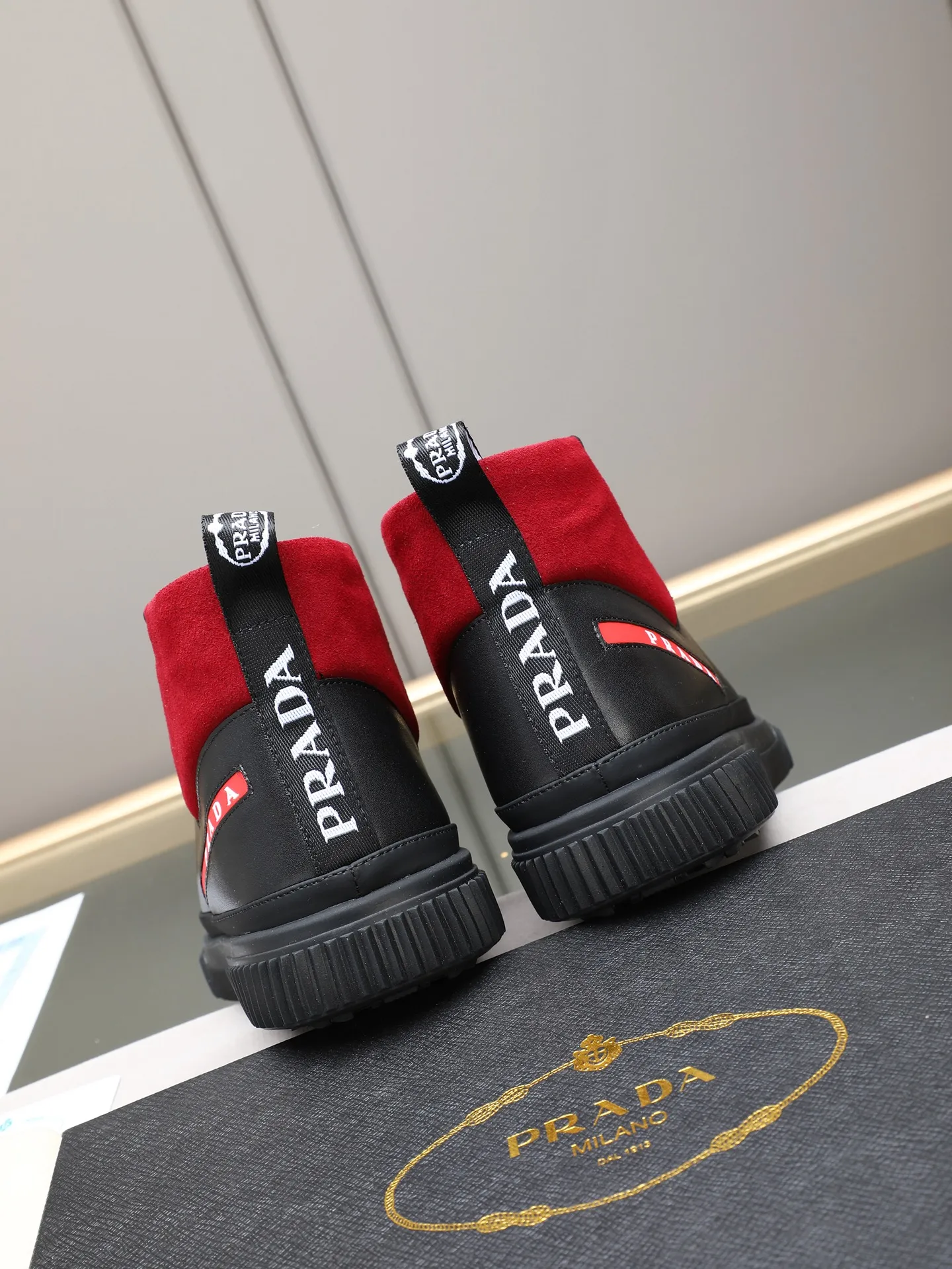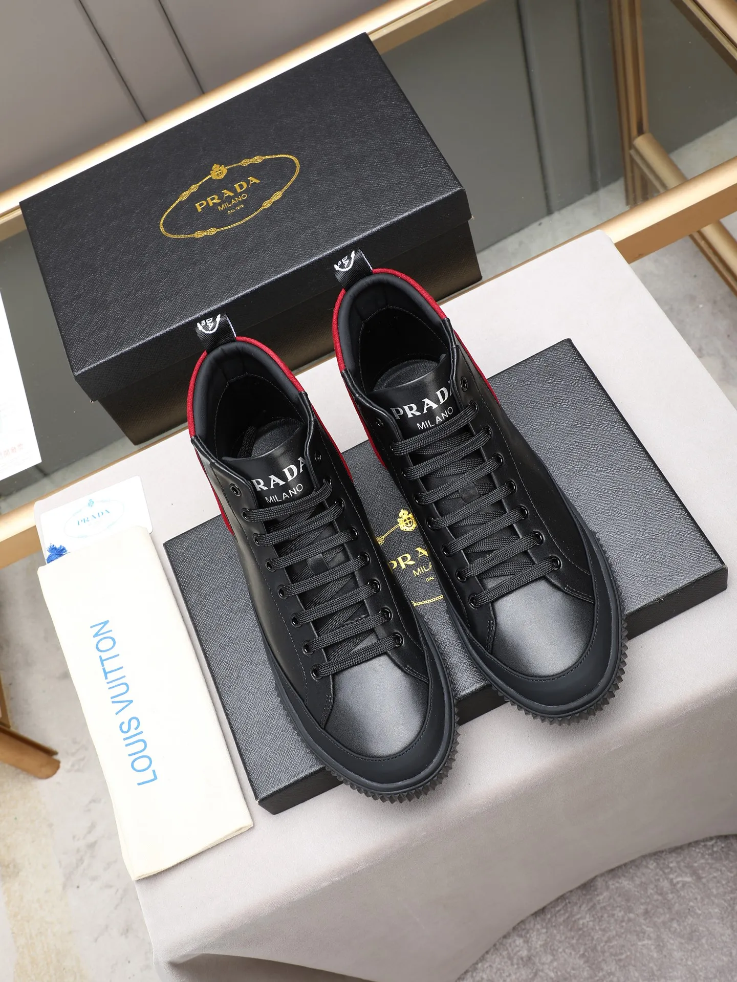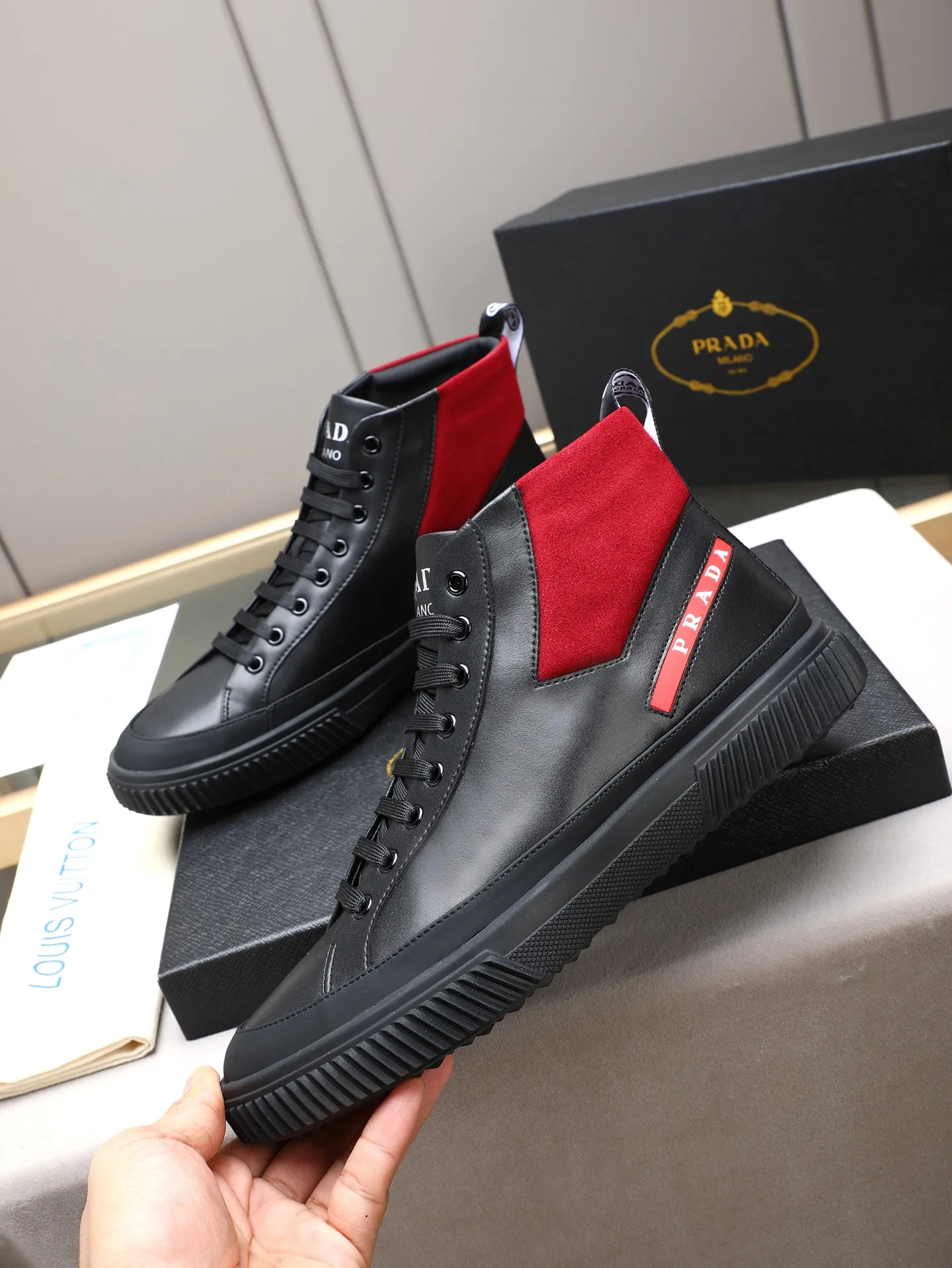 The best wholesale store offer cheap replica Prada High Top Shoes items Gender MenSize US 4=EUR(38), US 5=EUR(39), US 6=EUR(40), US 7=EUR(41), US 8=EUR(42), US 9=EUR(43), US 10=EUR(44) online!!