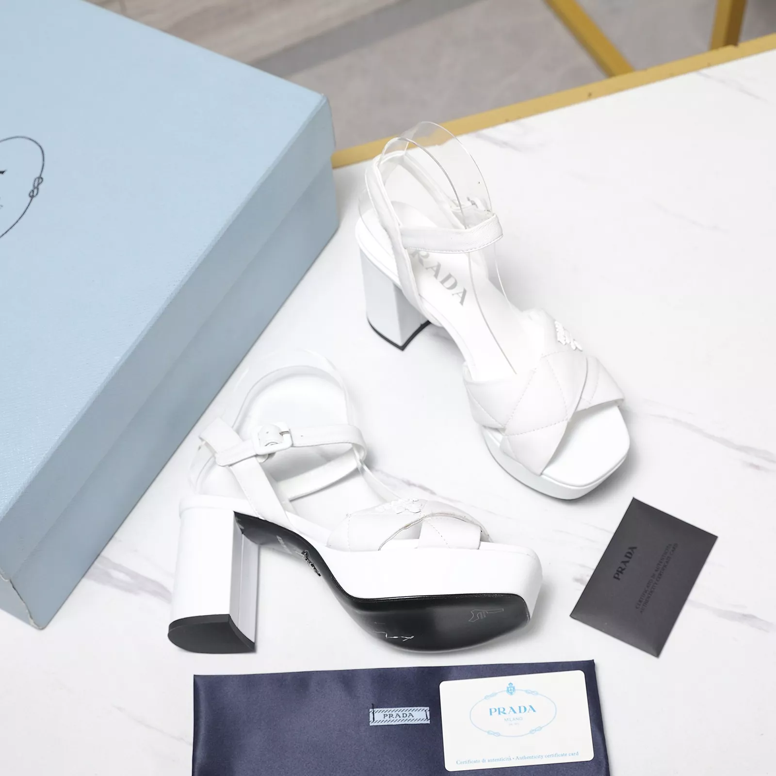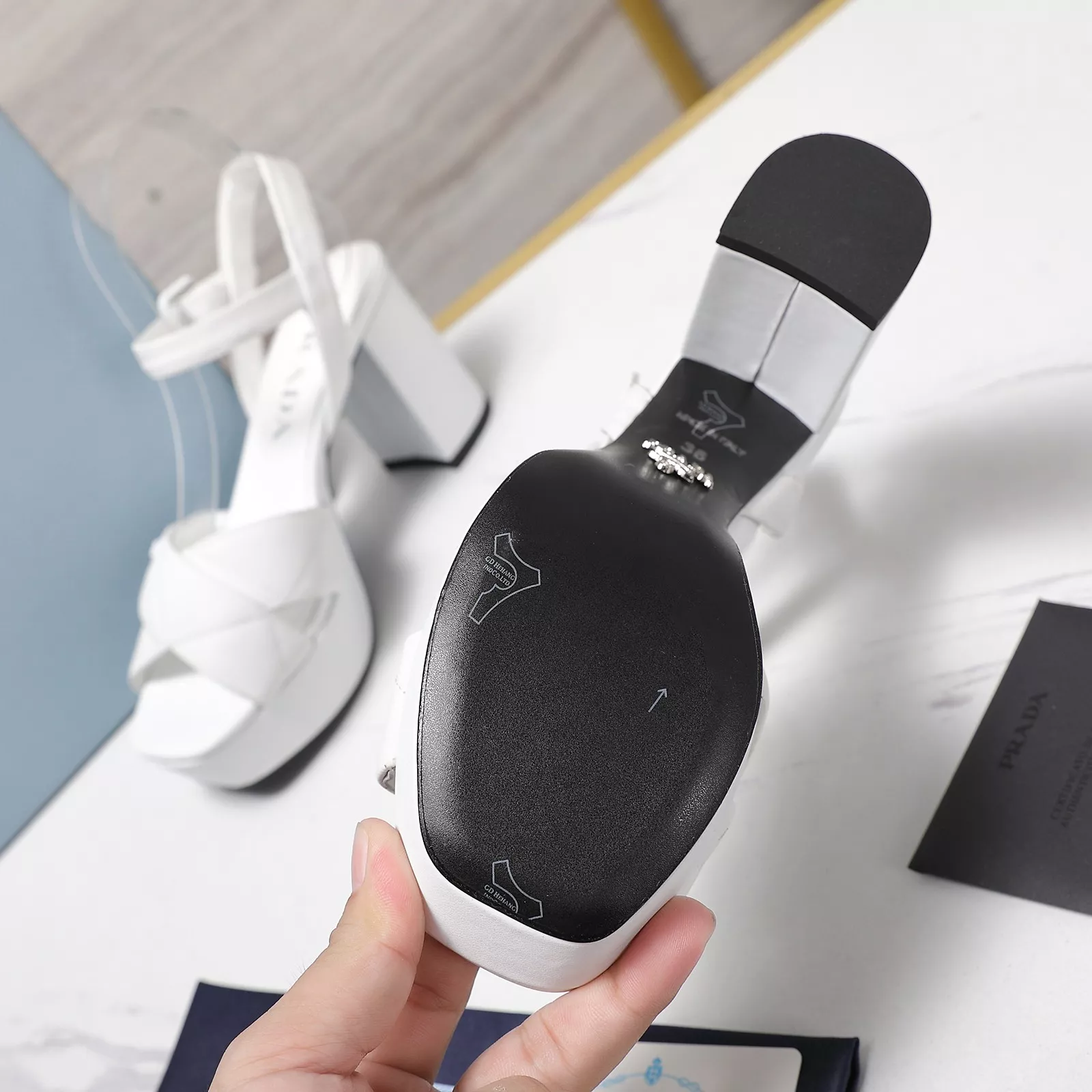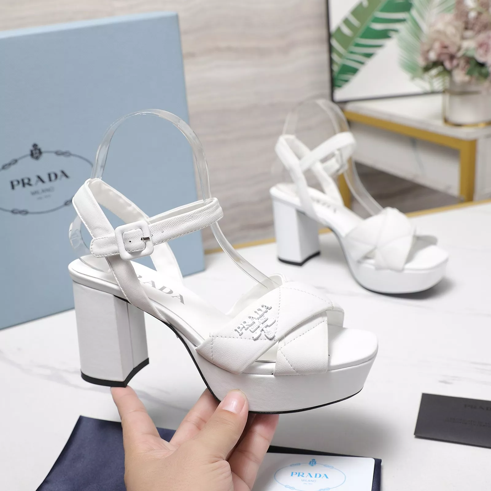 The best wholesale store offer cheap replica Prada Sandal items Gender WomenSize US 5=EUR(35), US 5.5=EUR(36), US 6=EUR(37), US 7=EUR(38), US 8=EUR(39), US 8.5=EUR(40)Heels 8 CM online!!