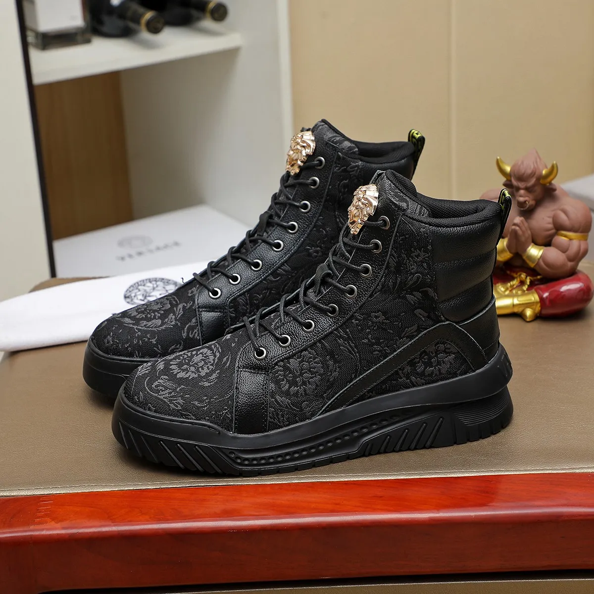 The best wholesale store offer cheap replica Versace High Tops Shoes items Gender MenSize US 4=EUR(38), US 5=EUR(39), US 6=EUR(40), US 7=EUR(41), US 8=EUR(42), US 9=EUR(43), US 10=EUR(44) online!!