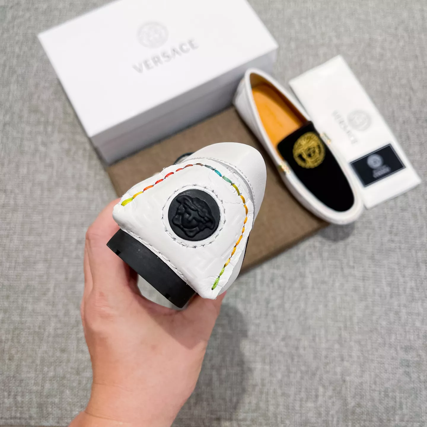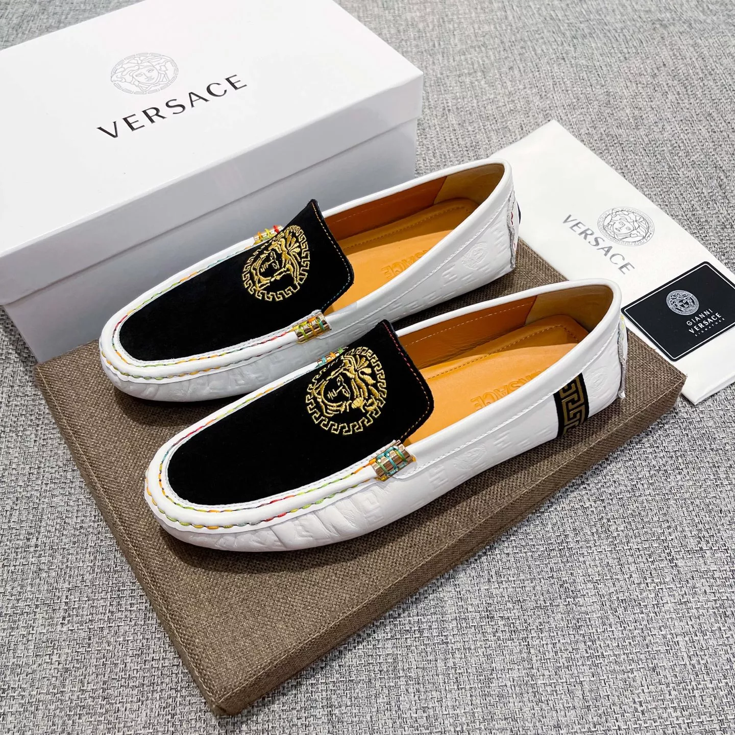 The best wholesale store offer cheap replica Versace Leather Shoes items Gender MenSize US 4=EUR(38), US 5=EUR(39), US 6=EUR(40), US 7=EUR(41), US 8=EUR(42), US 9=EUR(43), US 10=EUR(44) online!!