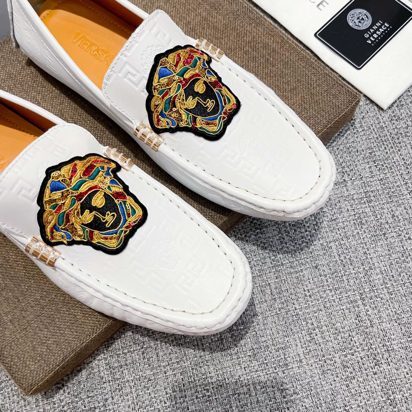 The best wholesale store offer cheap replica Versace Leather Shoes items Gender MenSize US 4=EUR(38), US 5=EUR(39), US 6=EUR(40), US 7=EUR(41), US 8=EUR(42), US 9=EUR(43), US 10=EUR(44) online!!