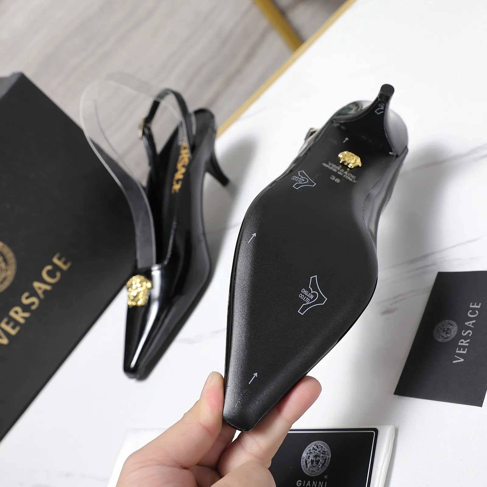 The best wholesale store offer cheap replica Versace Sandal items Gender WomenSize US 5=EUR(35), US 5.5=EUR(36), US 6=EUR(37), US 7=EUR(38), US 8=EUR(39), US 8.5=EUR(40)Heels 5.5 CM online!!