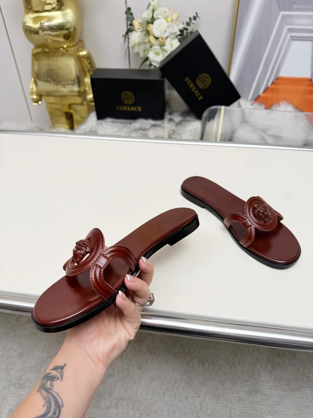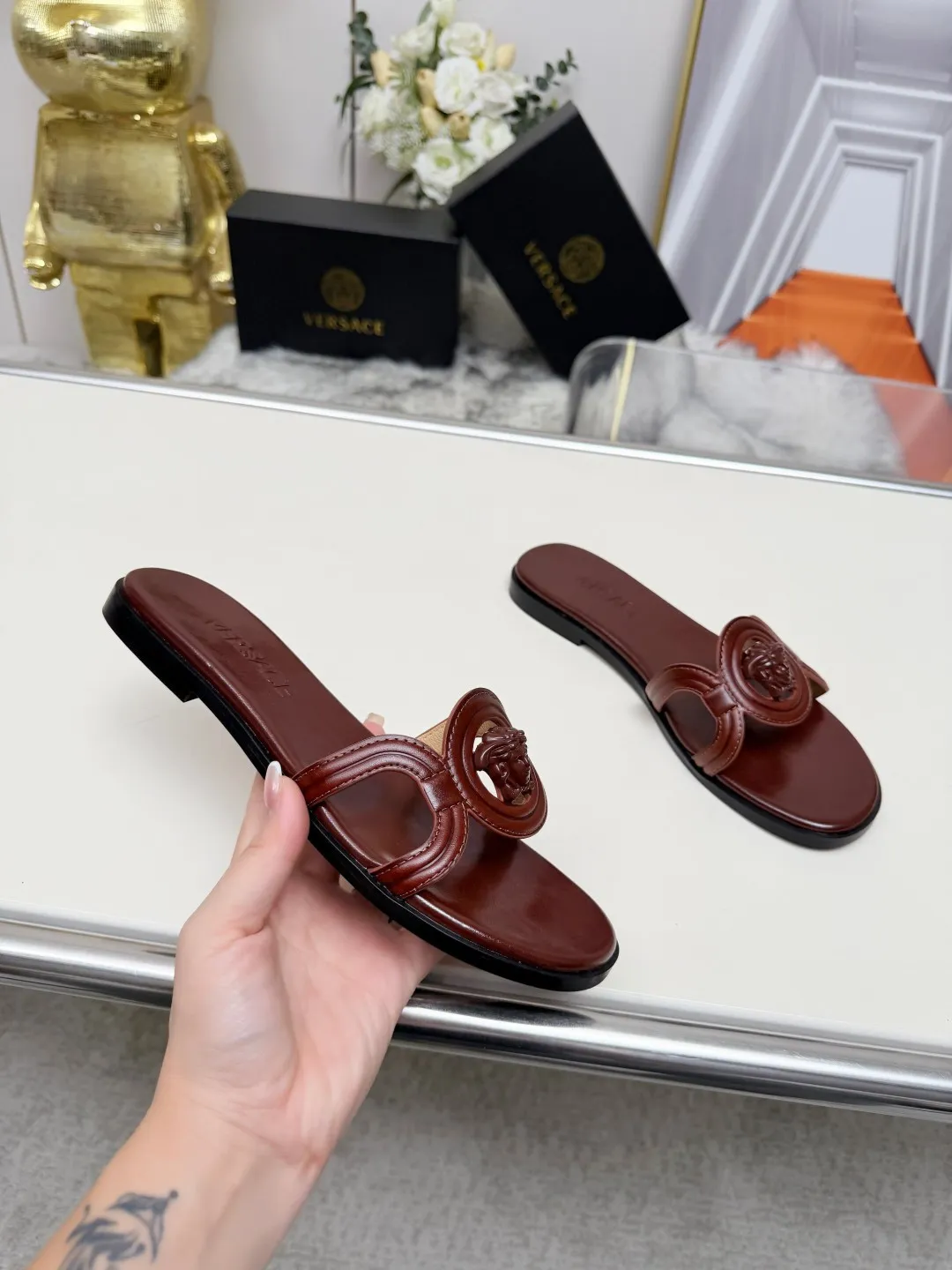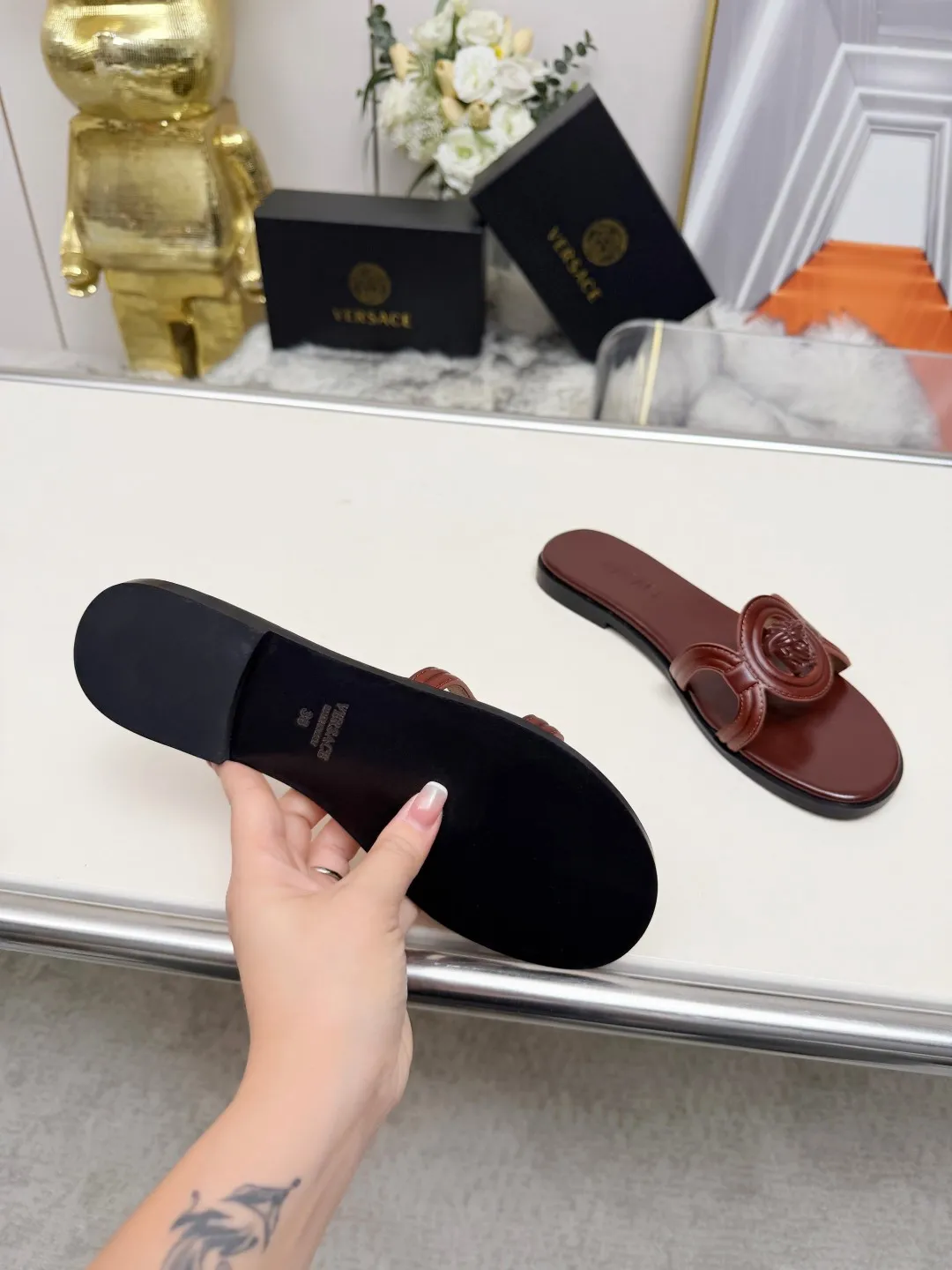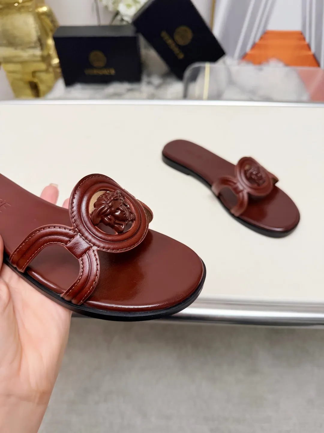 The best wholesale store offer cheap replica Versace Slippers items Gender WomenSize US 5=EUR(35), US 5.5=EUR(36), US 6=EUR(37), US 7=EUR(38), US 8=EUR(39), US 8.5=EUR(40) online!!