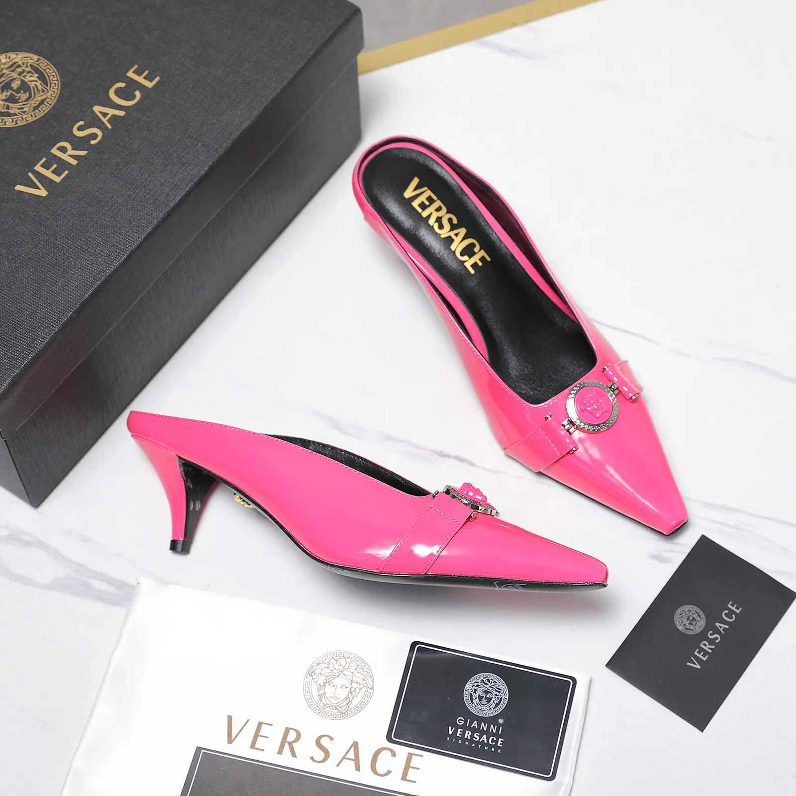 The best wholesale store offer cheap replica Versace Slippers items Gender WomenSize US 5=EUR(35), US 5.5=EUR(36), US 6=EUR(37), US 7=EUR(38), US 8=EUR(39), US 8.5=EUR(40)Heels 5.5 CM online!!