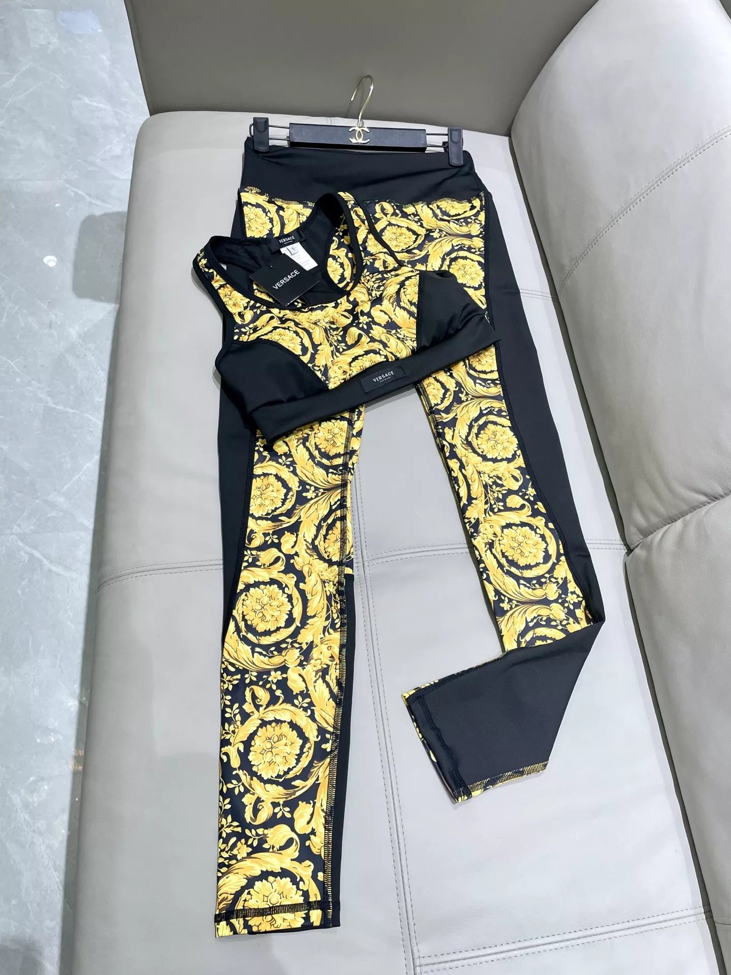 Wholeale cheap replica Versace Yoga Tracksuits Sleeveless For Women #1310119 prices $42.00 USD online, outlet Sleeved SleevelessGender WomenSize S, M, L, XL! Wholesale new arrivals cheap fake Versace Tracksuits enjoy free shipping and 66%-OFF with best quality! The hot on sale style Versace Yoga Tracksuits Sleeveless For Women #1310119.